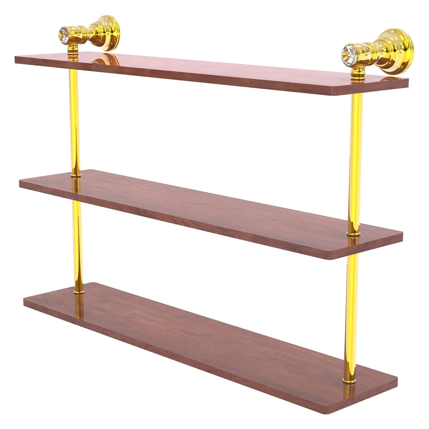 Allied Brass Carolina Crystal 22" x 5.54" Polished Brass Solid Brass Triple Wood Shelf