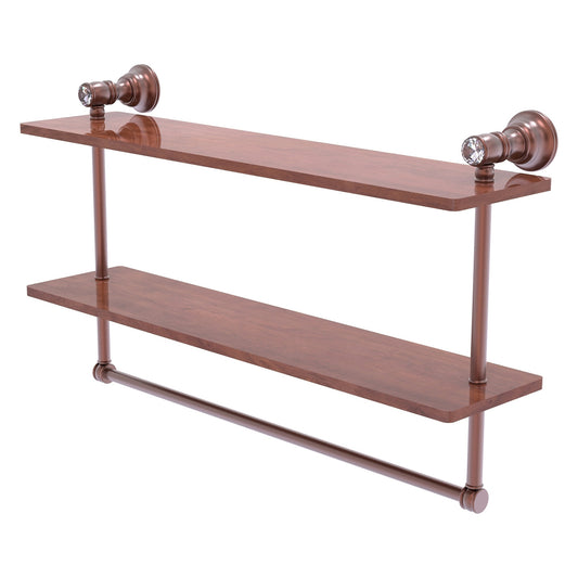Allied Brass Carolina Crystal 22" x 5.6" Antique Copper Solid Brass Double Wood Vanity Shelf With Integrated Towel Bar