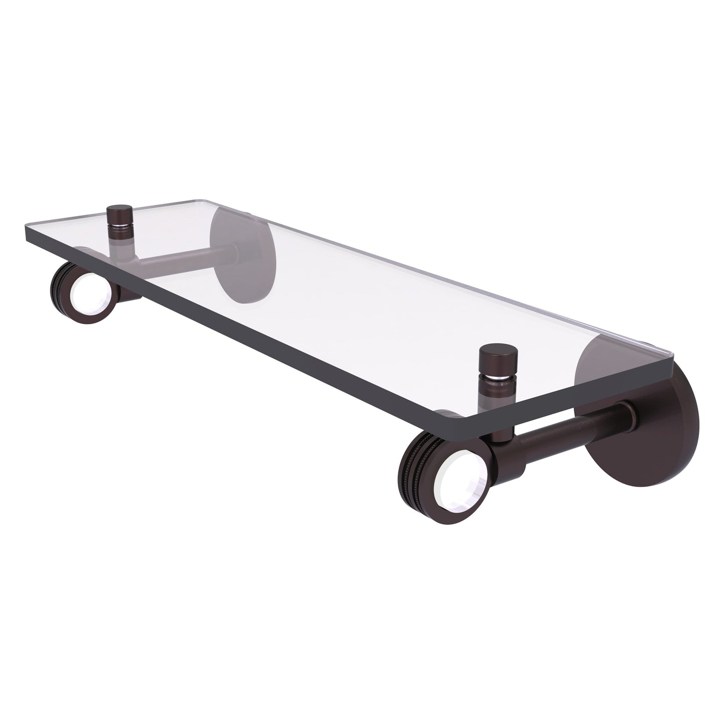Allied Brass Clearview 16" x 5.65" Antique Bronze Solid Brass Glass Shelf With Dotted Accents