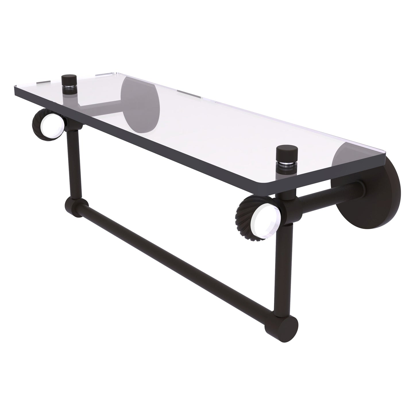 Allied Brass Clearview 16" x 5.65" Oil Rubbed Bronze Solid Brass Glass Shelf With Towel Bar and Twisted Accents