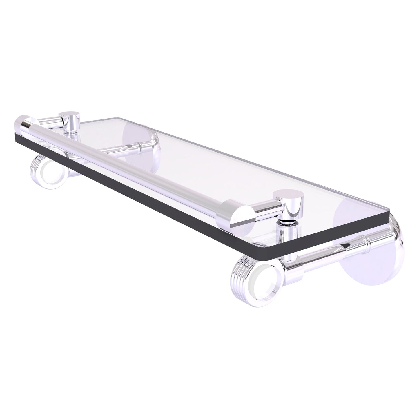 Allied Brass Clearview 16" x 5.65" Polished Chrome Solid Brass Gallery Rail Glass Shelf With Grooved Accents