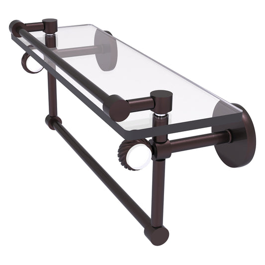 Allied Brass Clearview 16" x 5.8" Antique Bronze Solid Brass Glass Gallery Shelf With Towel Bar and Twisted Accents