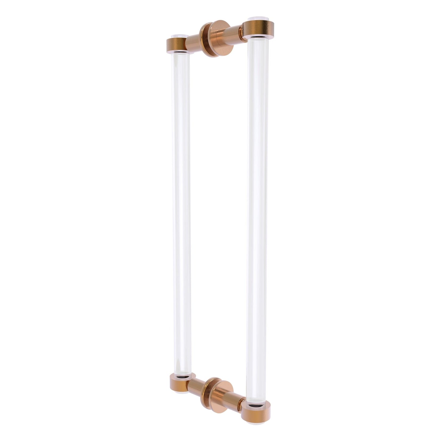 The clean sharp lines of this modern back-to-back shower door pull fits well with any bathroom décor ranging from modern to traditional. Made from high quality solid brass with accents of clear acrylic and provided with your choice of any of our lifetime designer finishes, the shower door pull is extremely attractive yet highly functional. Ideal for glass shower doors of all sizes and styles, the easy to install back-to-back shower door pull comes with two durable u-shaped pulls made from solid brass and all the hardware necessary for installation.