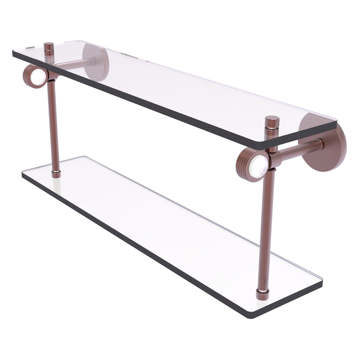 Allied Brass Clearview 22" x 5.6" Antique Copper Solid Brass Two-Tiered Glass Shelf With Grooved Accents