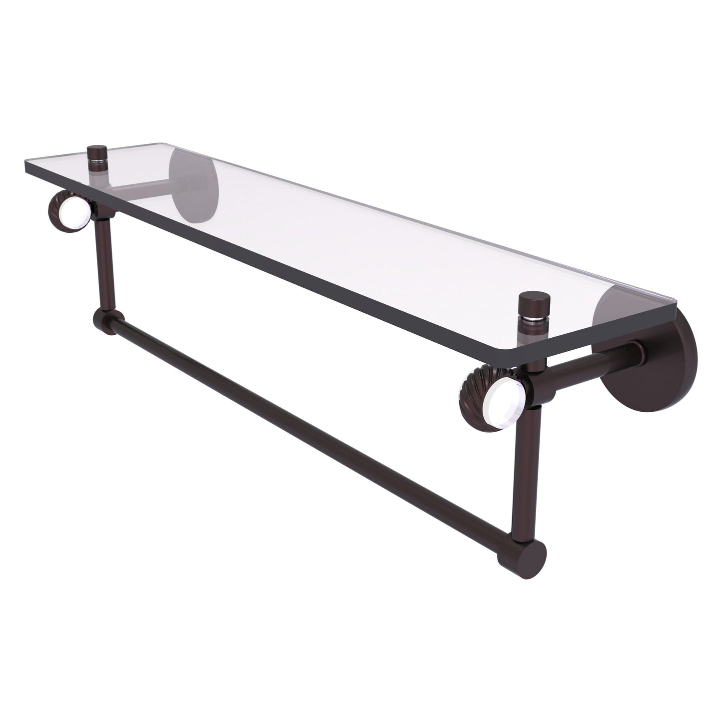 Allied Brass Clearview 22" x 5.65" Antique Bronze Solid Brass Glass Shelf With Towel Bar and Twisted Accents