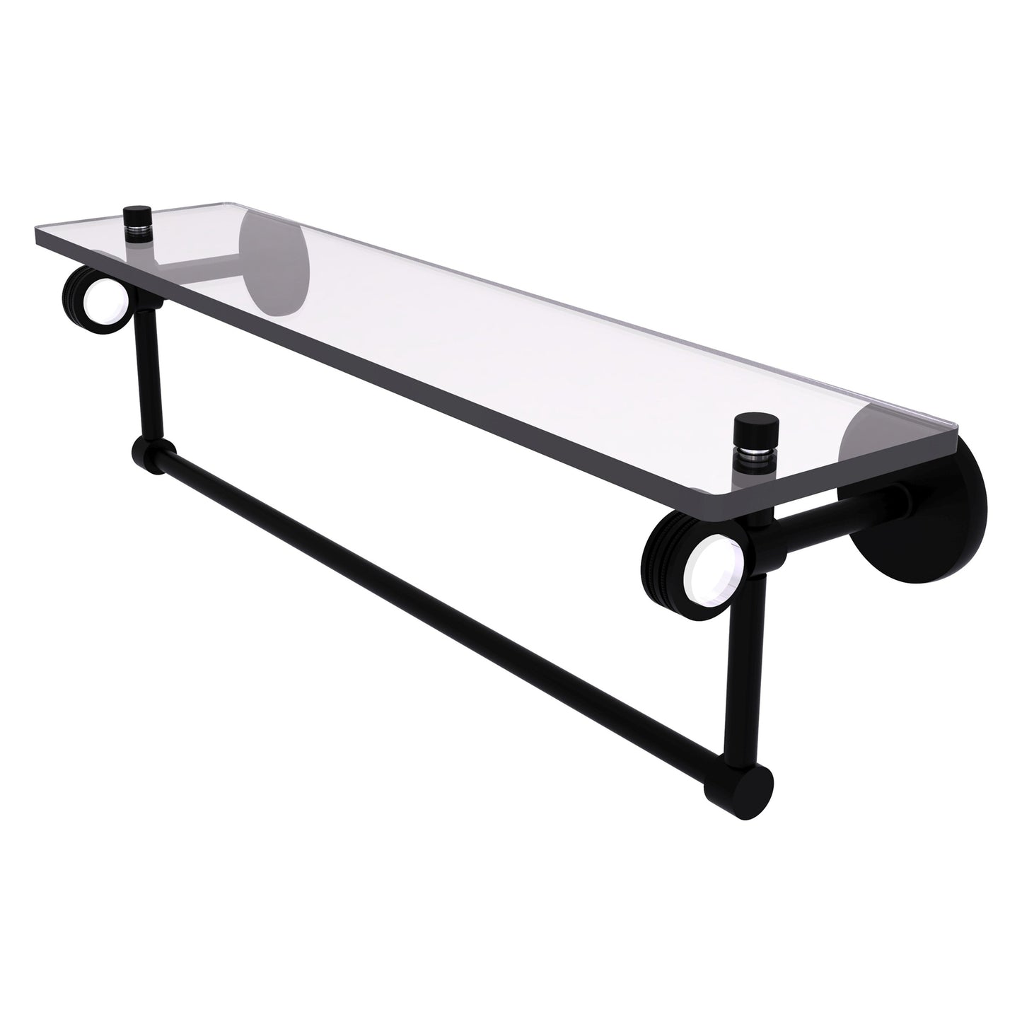 Allied Brass Clearview 22" x 5.65" Matte Black Solid Brass Glass Shelf With Towel Bar and Dotted Accents