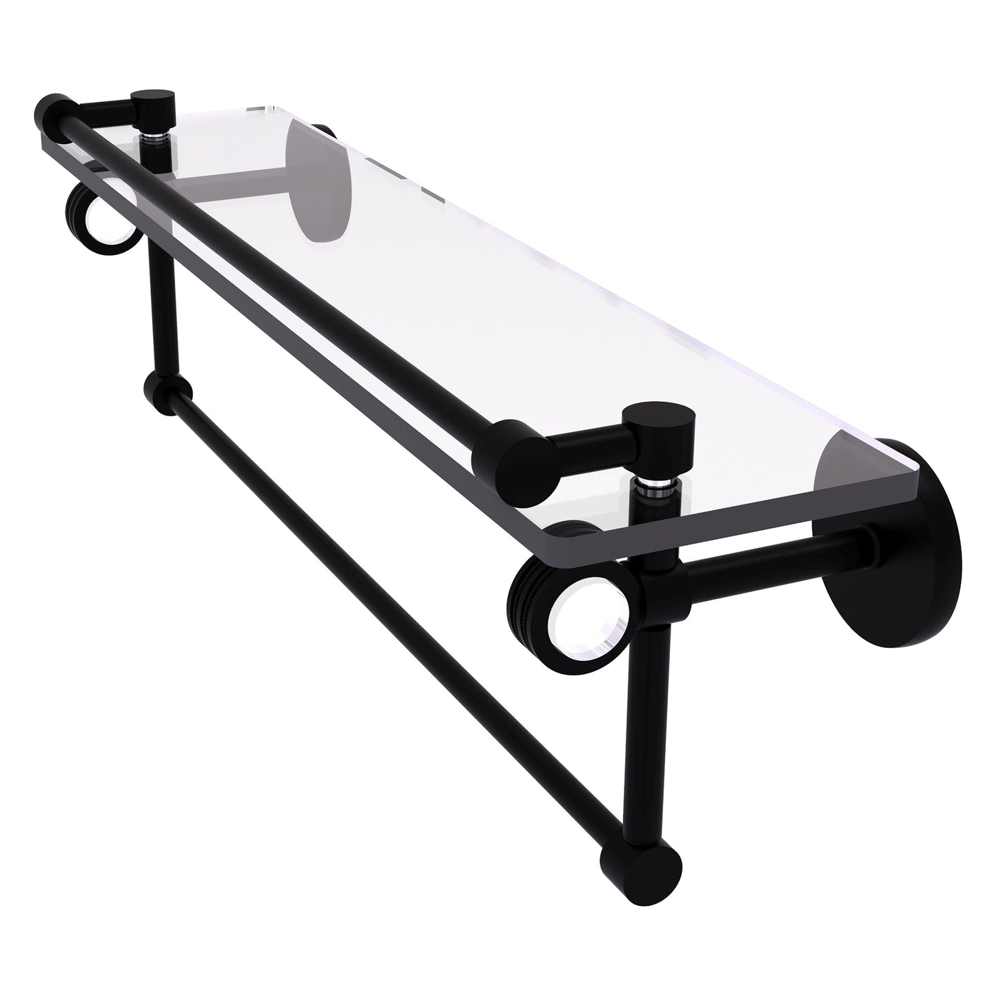 Allied Brass Clearview 22" x 5.8" Matte Black Solid Brass Glass Gallery Shelf With Towel Bar and Dotted Accents