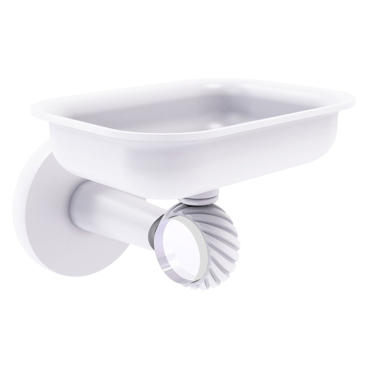 Allied Brass Clearview 4.4" x 3.6" Matte White Solid Brass Wall-Mounted Soap Dish Holder With Twisted Accents