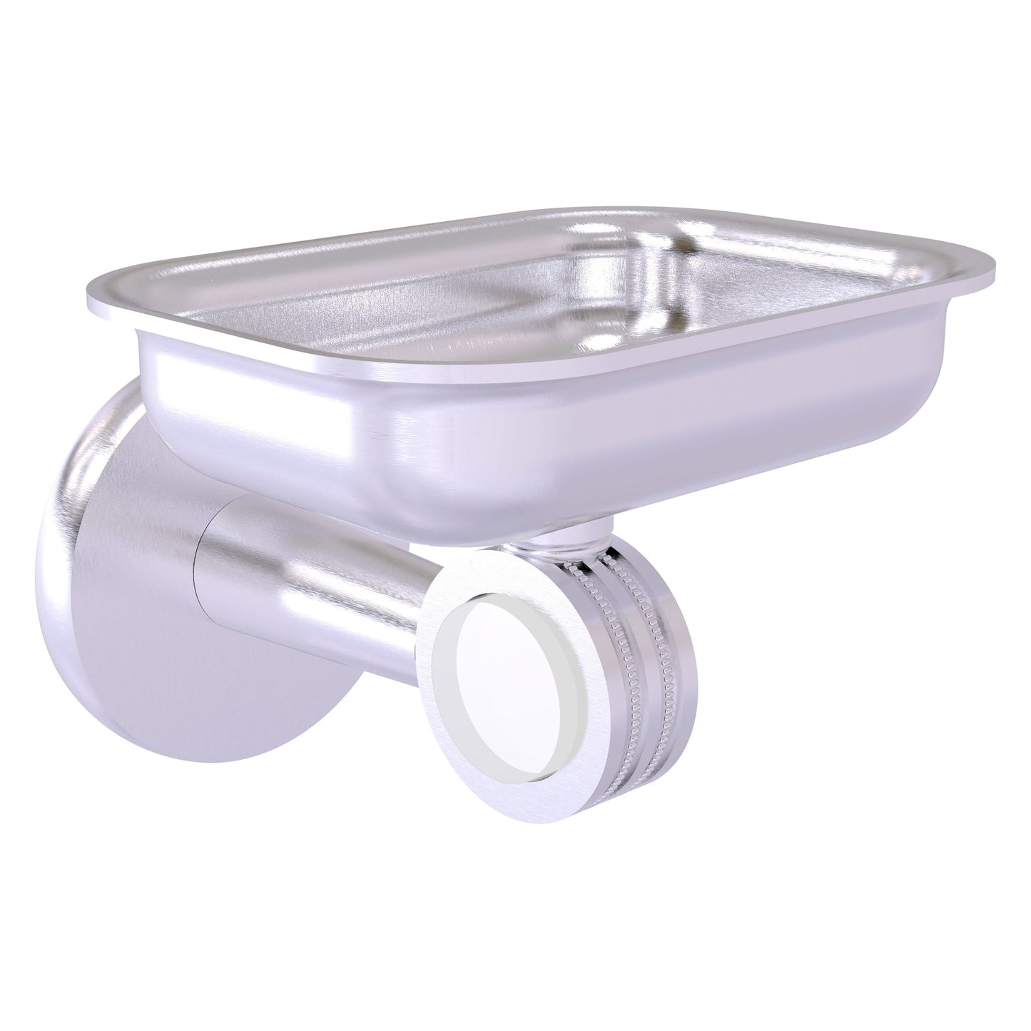 Allied Brass Clearview 4.4" x 3.6" Satin Chrome Solid Brass Wall-Mounted Soap Dish Holder With Dotted Accents
