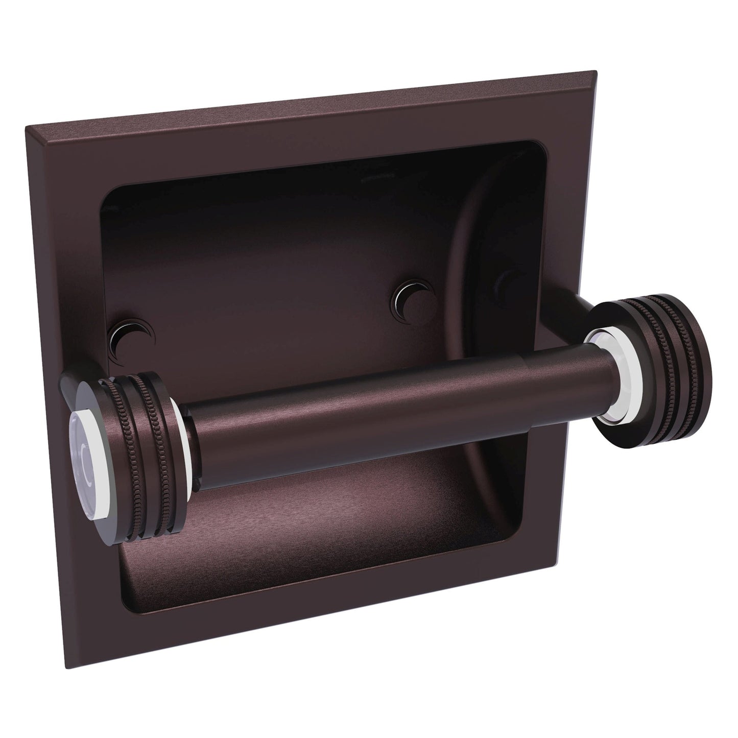 Allied Brass Clearview 6.2" x 4.2" Antique Bronze Solid Brass Recessed Toilet Paper Holder With Dotted Accents