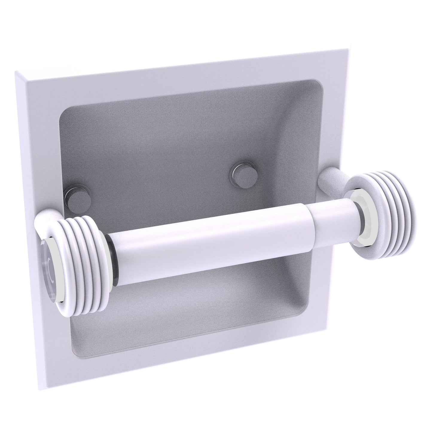 Allied Brass Clearview 6.2" x 4.2" Matte White Solid Brass Recessed Toilet Paper Holder With Grooved Accents