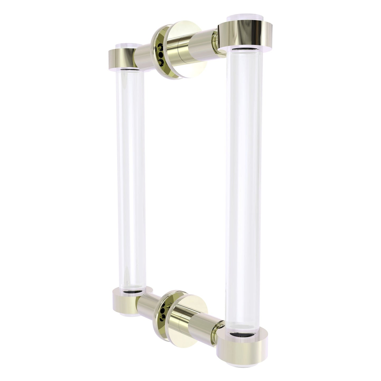 The clean sharp lines of this modern back-to-back shower door pull fits well with any bathroom décor ranging from modern to traditional. Made from high quality solid brass with accents of clear acrylic and provided with your choice of any of our lifetime designer finishes, the shower door pull is extremely attractive yet highly functional. Ideal for glass shower doors of all sizes and styles, the easy to install back-to-back shower door pull comes with two durable u-shaped pulls made from solid brass and all the hardware necessary for installation.