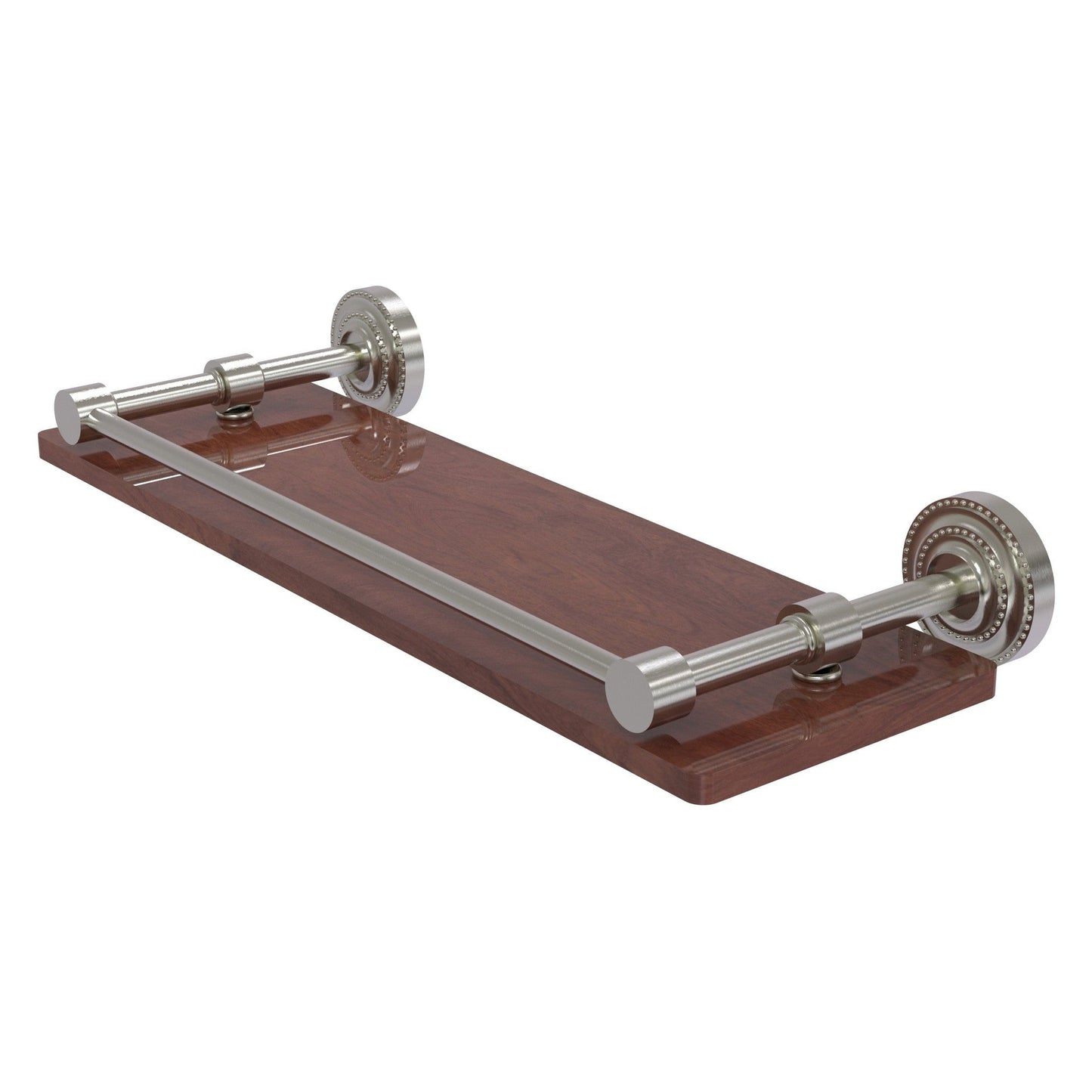 Allied Brass Dottingham 16" x 5" Satin Nickel Solid Brass Solid IPE Ironwood Shelf With Gallery Rail