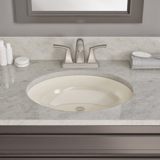 The VCS-1013B biscuit oval porcelain undermount sink is made from true vitreous china which is triple glazed and triple fired to ensure your sink is durable and strong. Undermounting a bathroom sink creates a sleek look and allows for more space on your countertop. The overall dimensions for the VCS-1013B are 12 1/4″ x 15 1/8″ x 7 1/8″ and requires a 18″ minimum cabinet size.