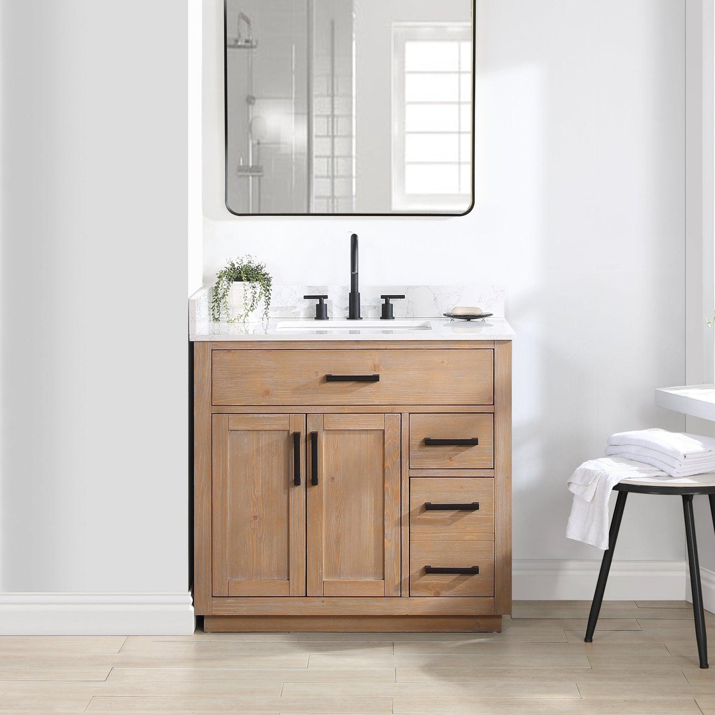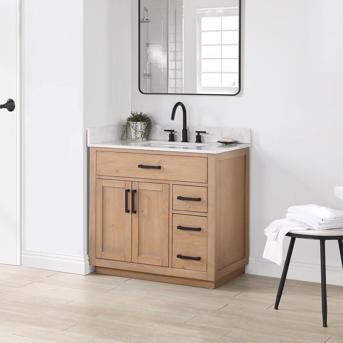 Love the fresh, clean, classic look? Our Gavino vanity series delivers timeless sophistication with a modern twist—from the simple, bar-style pulls to the gorgeous grain of the countertop. Superior craftsmanship is at the heart of this piece, featuring premium, durable materials that guarantee long-lasting beauty and functionality. The Gavino is also ripe with thoughtful details like a flip-down drawer that maximizes storage space, whisper-quiet door hinges, and a matching mirror that ties this stylish ensemble together.