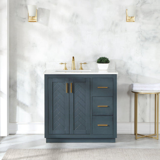 Altair Gazsi 36" Classic Blue Freestanding Single Bathroom Vanity Set With Elegant Composite Grain White Stone Top, Rectangular Undermount Ceramic Sink, Overflow, and Backsplash