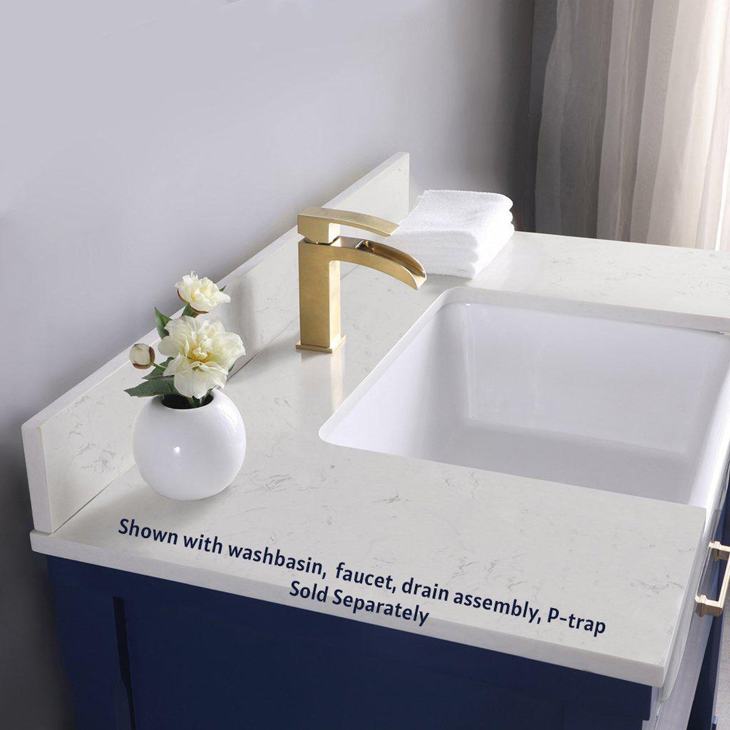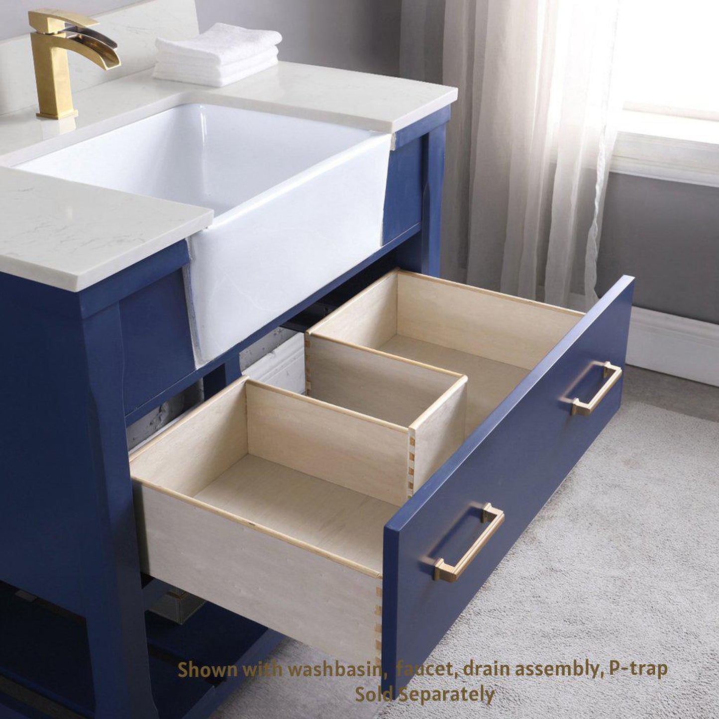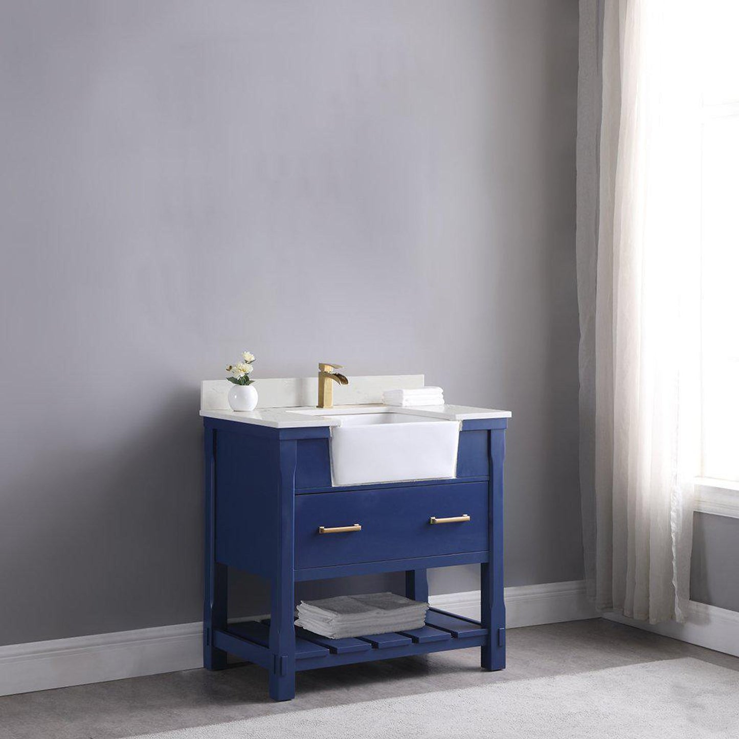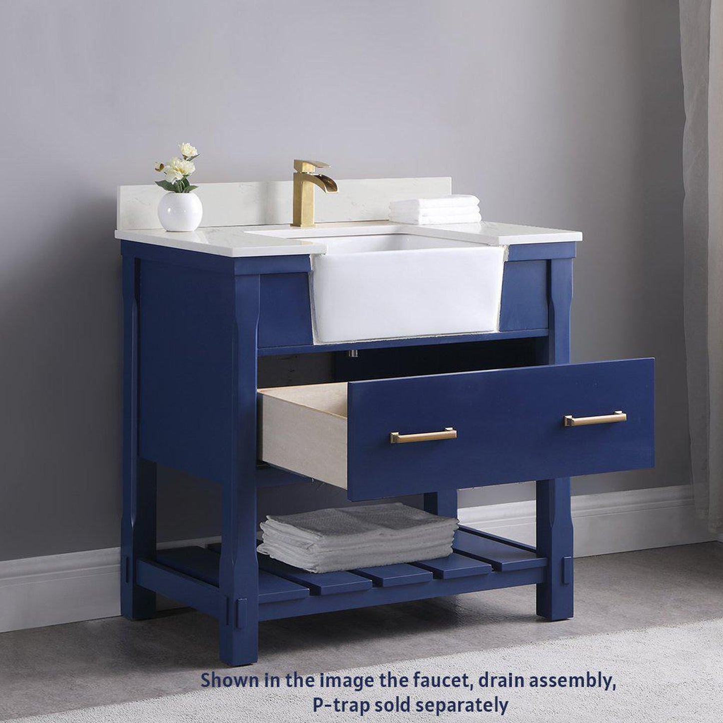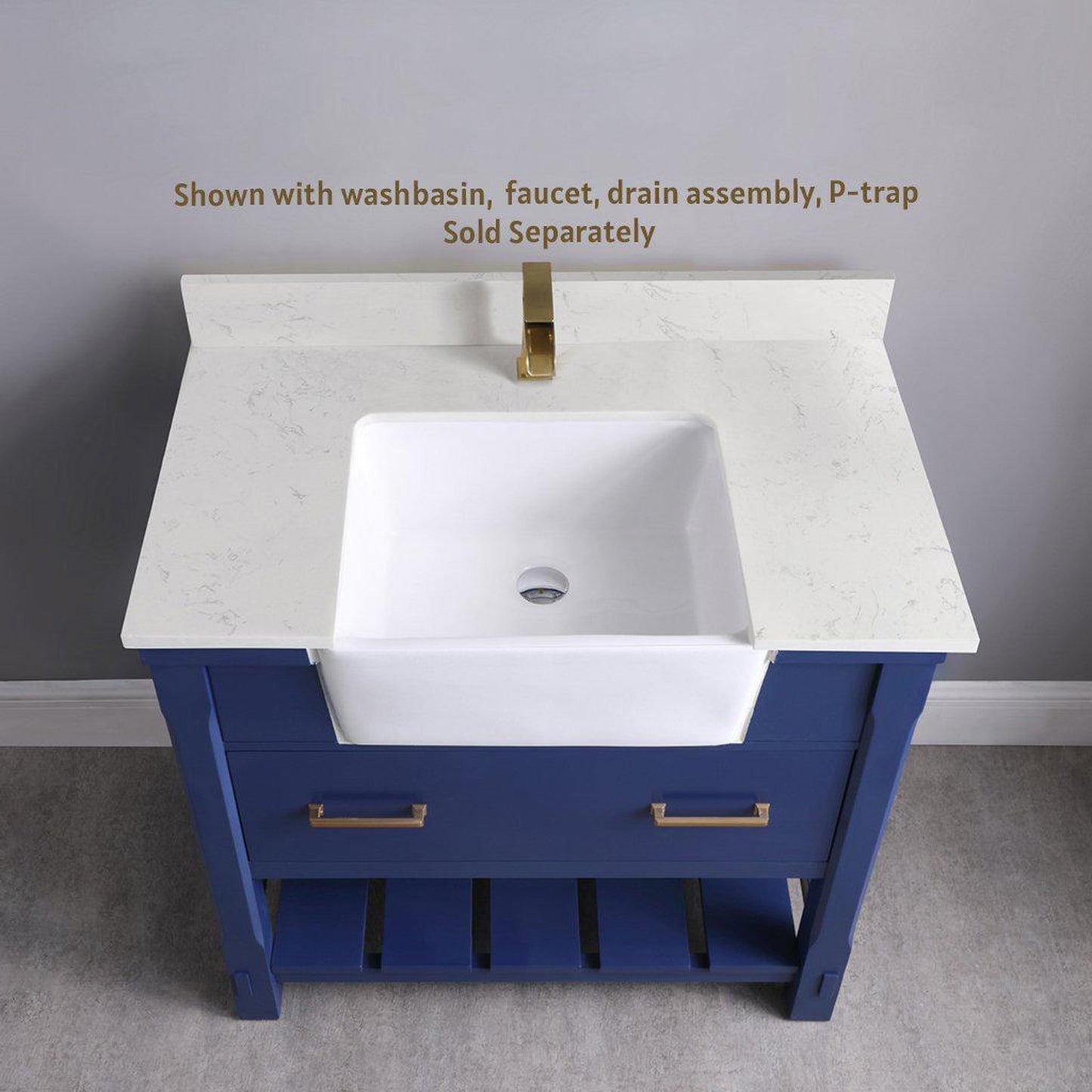 Altair Georgia 36" Single Jewelry Blue Freestanding Bathroom Vanity Set With Aosta White Composite Stone Top, Rectangular Farmhouse Sink, Overflow, and Backsplash