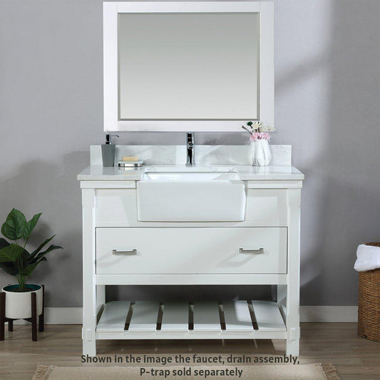 Altair Georgia 42" Single White Freestanding Bathroom Vanity Set With Mirror, Aosta White Composite Stone Top Rectangular Farmhouse Basin, and Backsplash