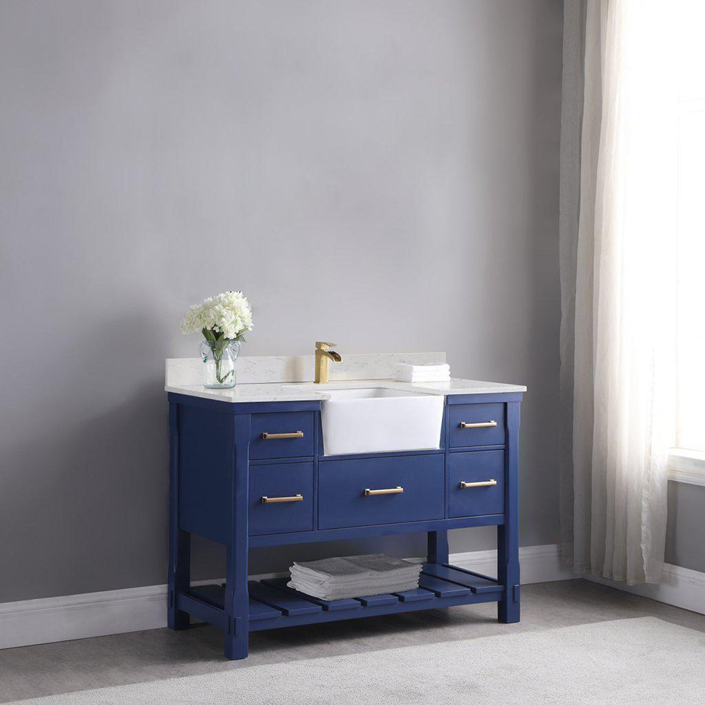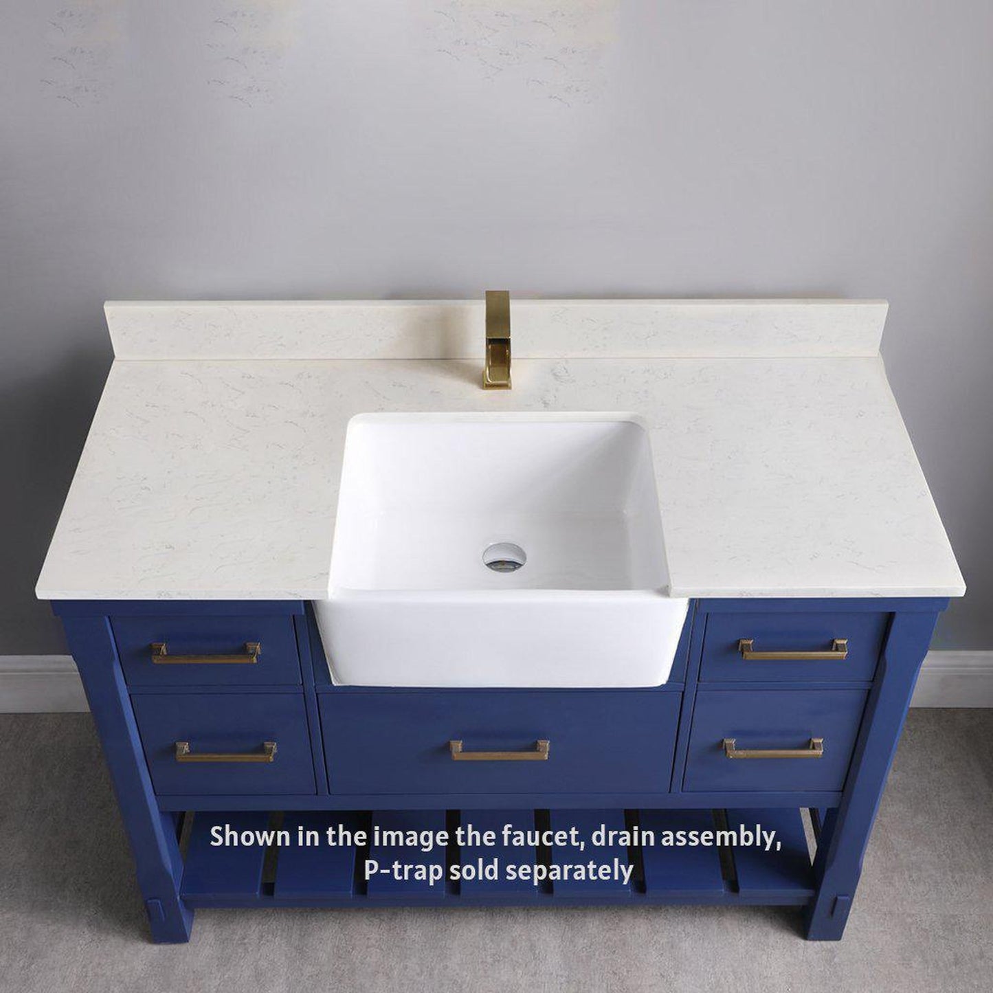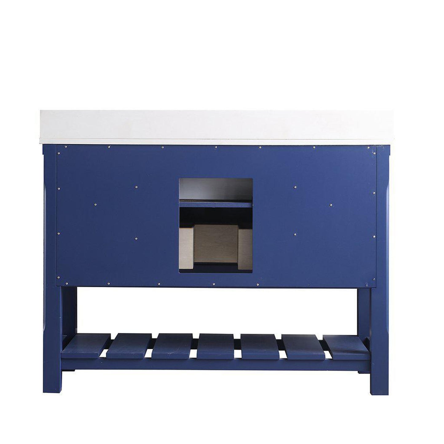 Altair Georgia 48" Single Jewelry Blue Freestanding Bathroom Vanity Set With Aosta White Composite Stone Top, Rectangular Farmhouse Sink, Overflow, and Backsplash
