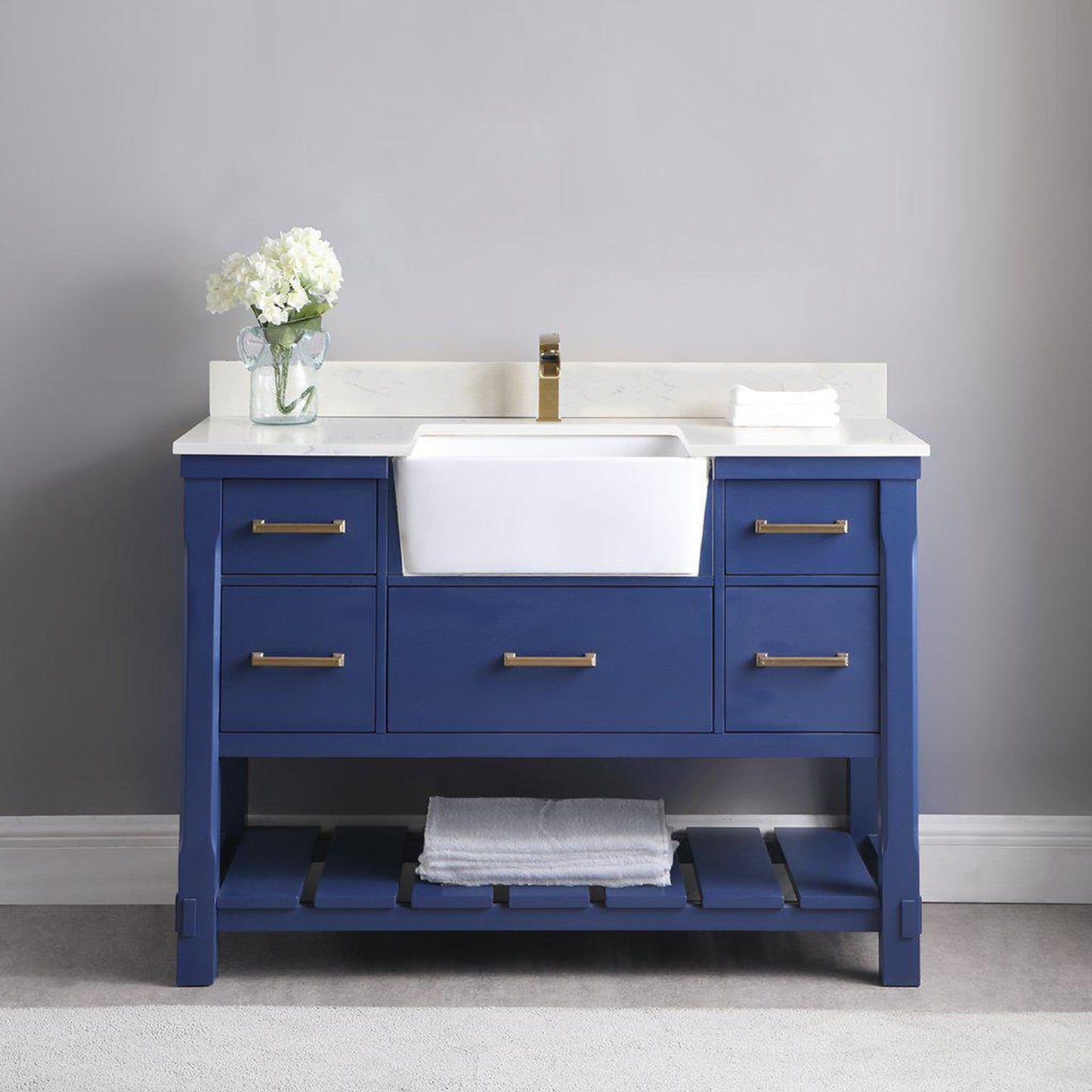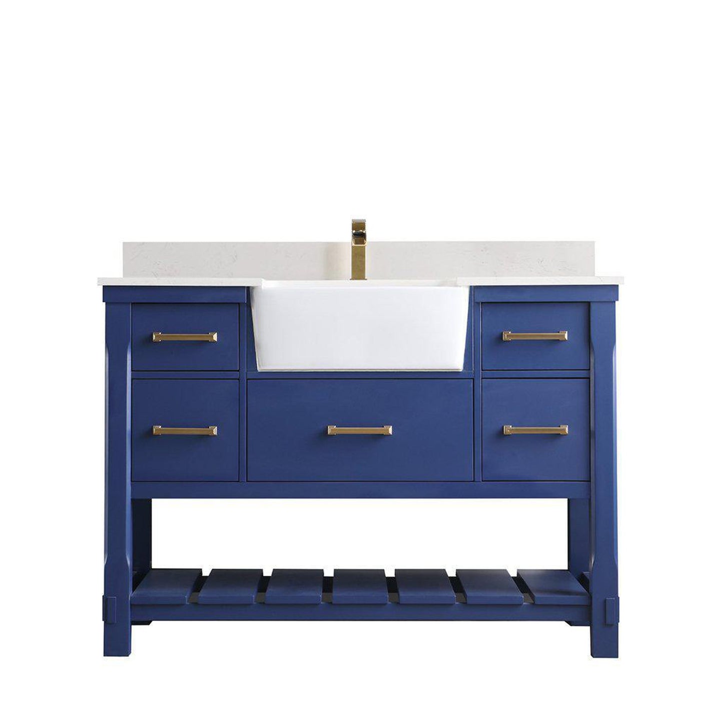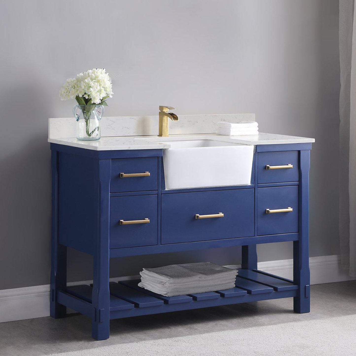 Altair Georgia 48" Single Jewelry Blue Freestanding Bathroom Vanity Set With Aosta White Composite Stone Top, Rectangular Farmhouse Sink, Overflow, and Backsplash