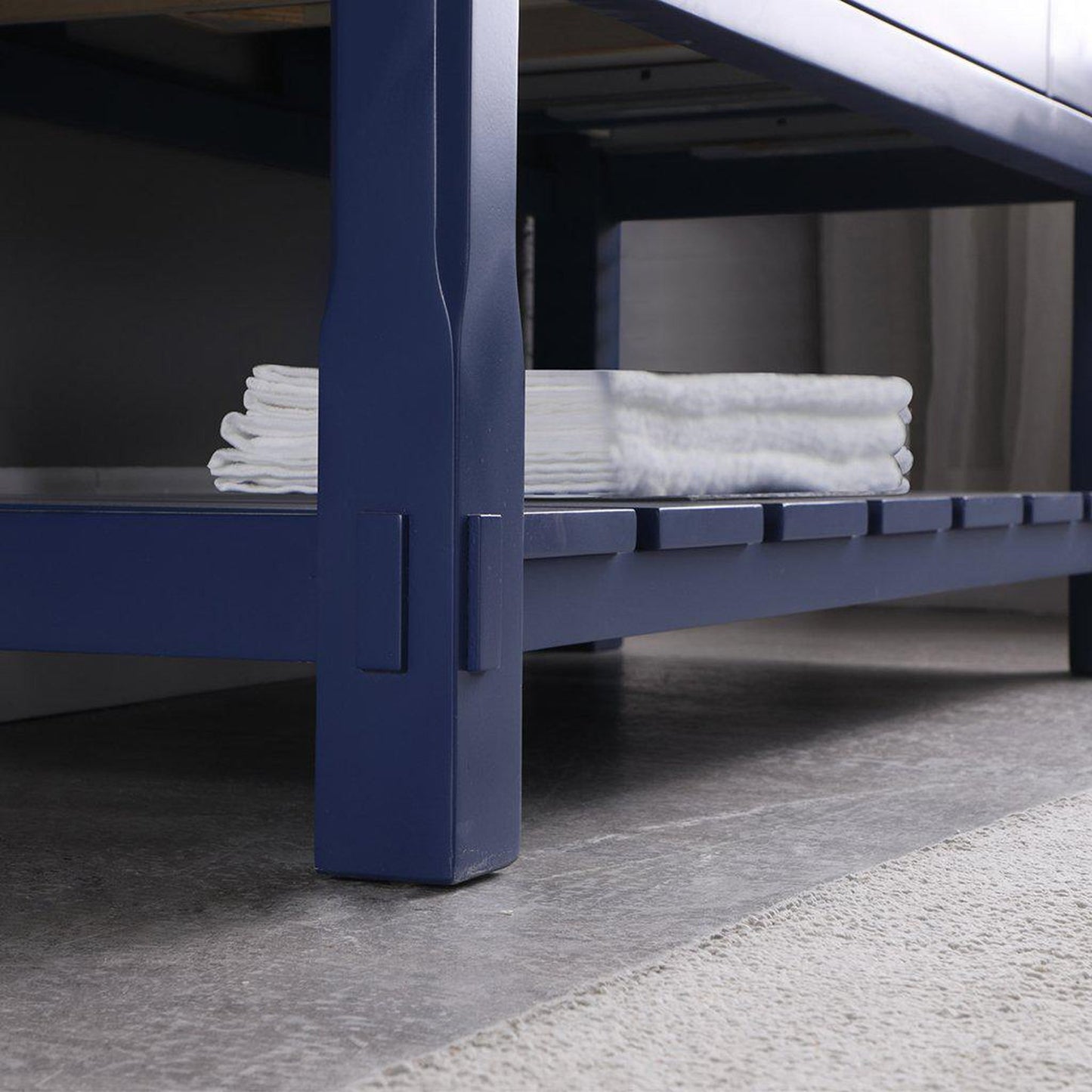 - Bottom shelf storage for towels