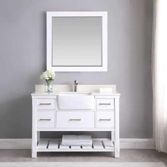 Altair Georgia 48" Single White Freestanding Bathroom Vanity Set With Mirror, Aosta White Composite Stone Top, Rectangular Farmhouse Sink, Overflow, and Backsplash