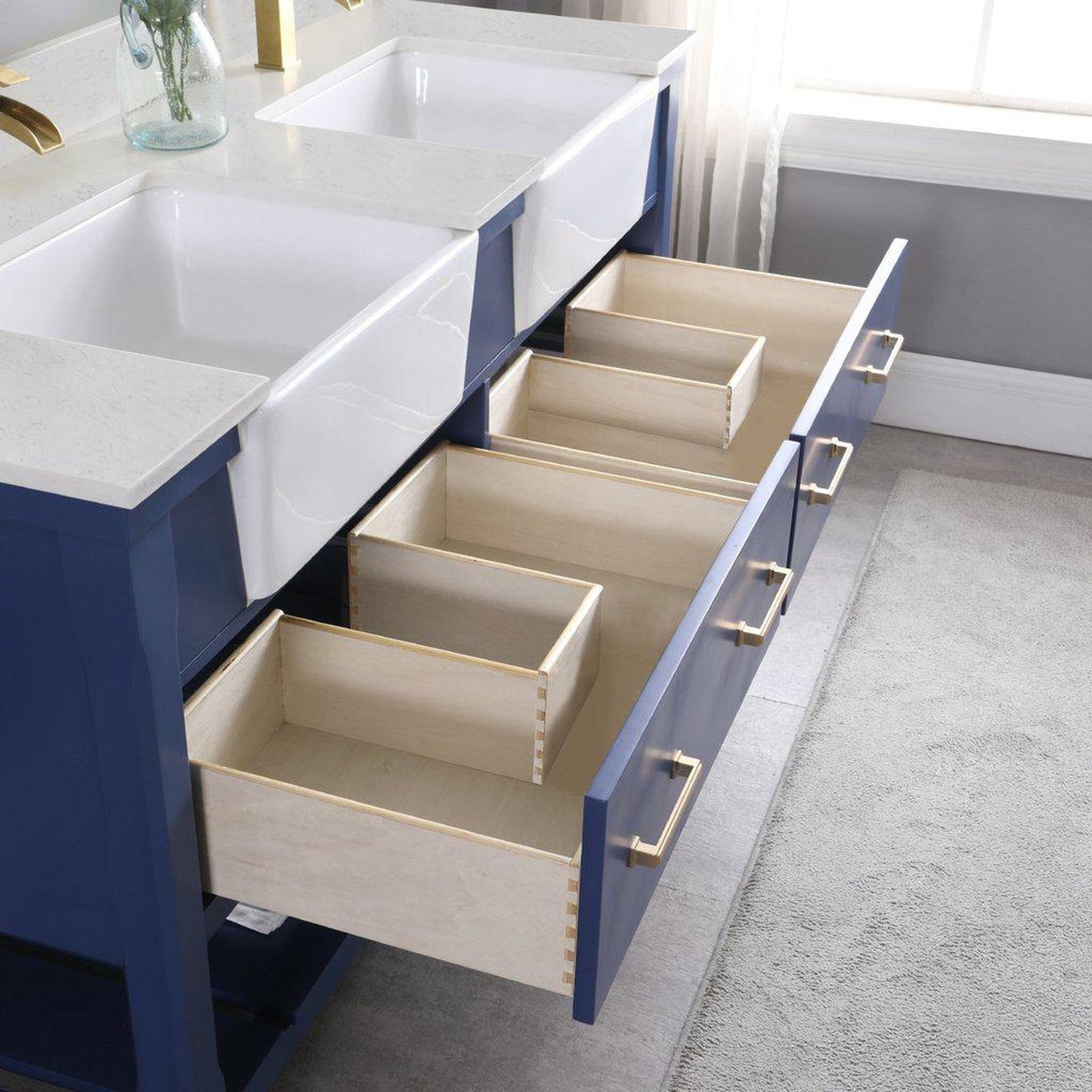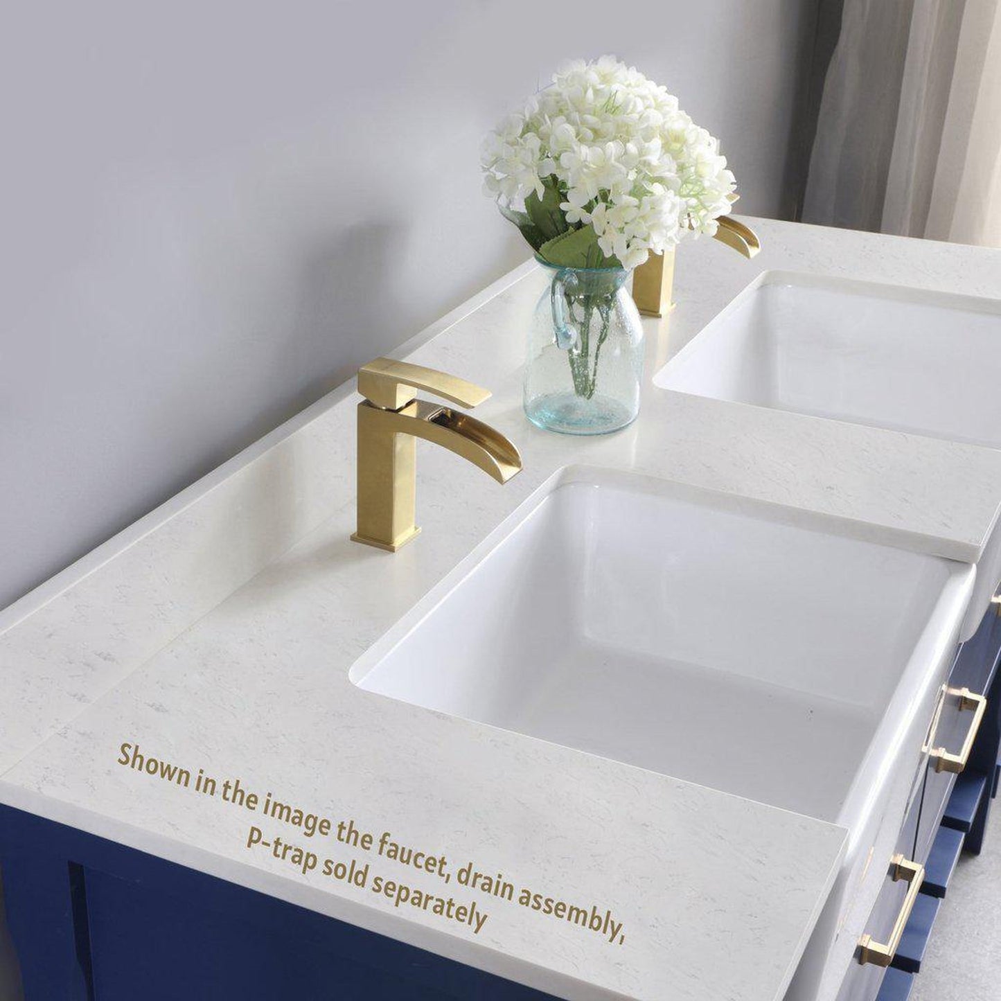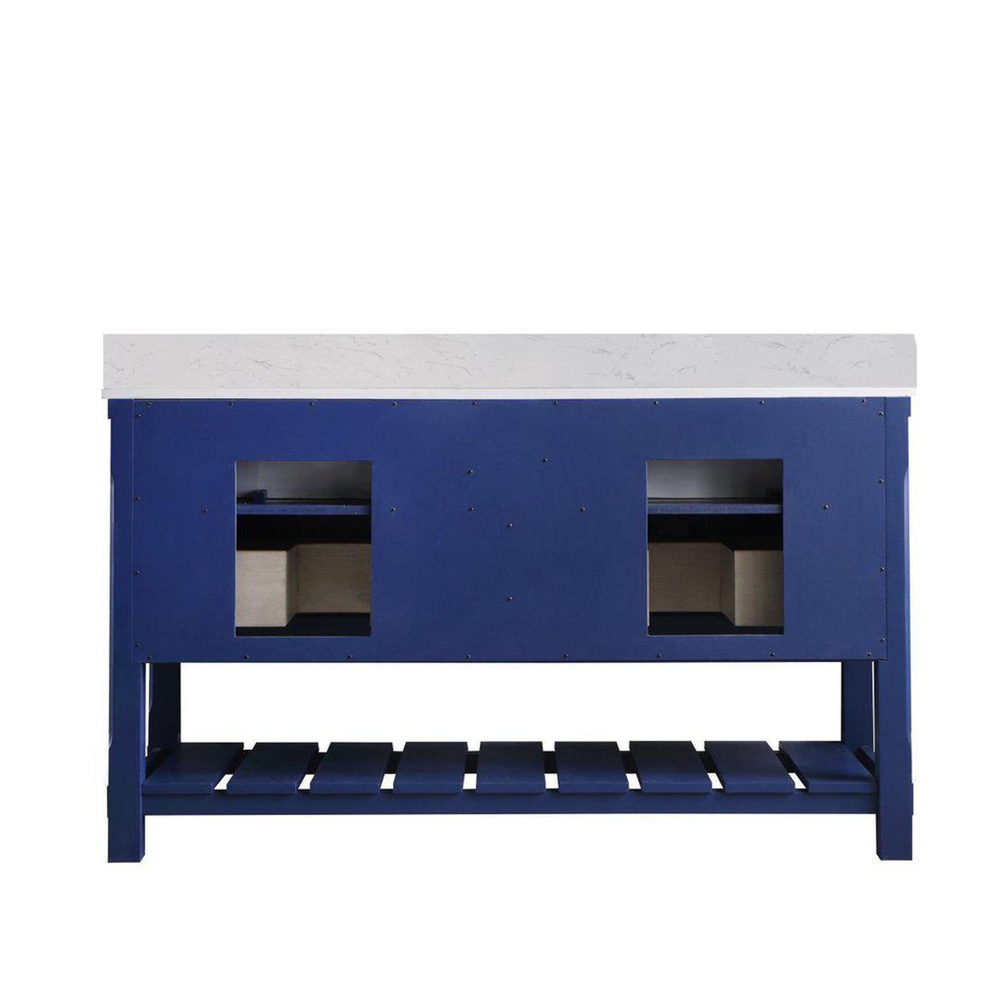 Altair Georgia 60" Double Jewelry Blue Freestanding Bathroom Vanity Set With Aosta White Composite Stone Top, Two Rectangular Farmhouse Sinks, Overflow, and Backsplash