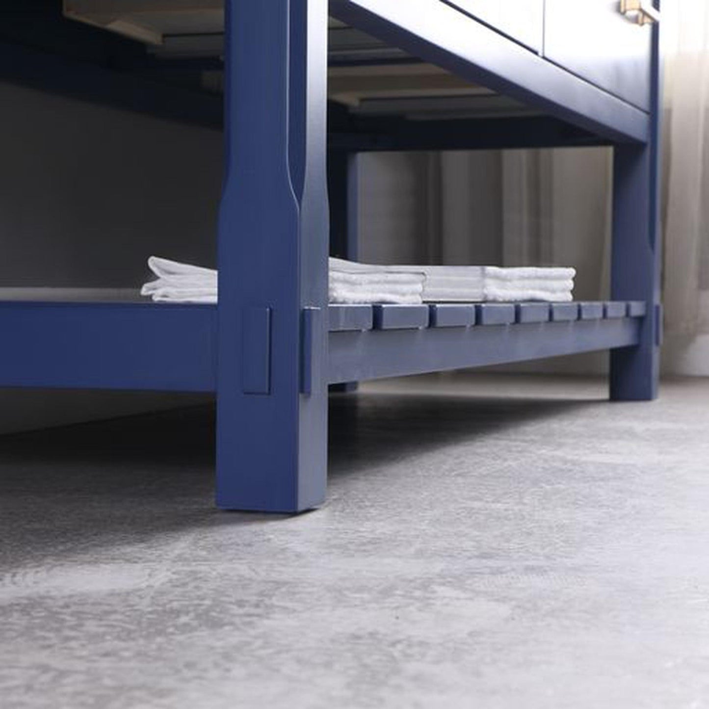 - Bottom shelf storage for towels