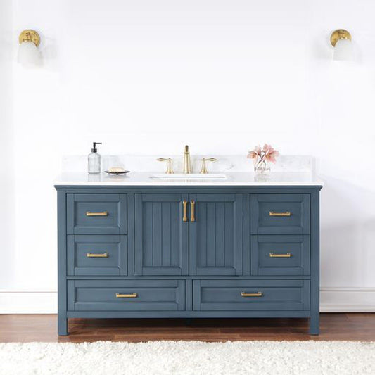Altair Isla 60" Single Classic Blue Freestanding Bathroom Vanity Set With Aosta White Composite Stone Top, Rectangular Undermount Ceramic Sink, and Overflow