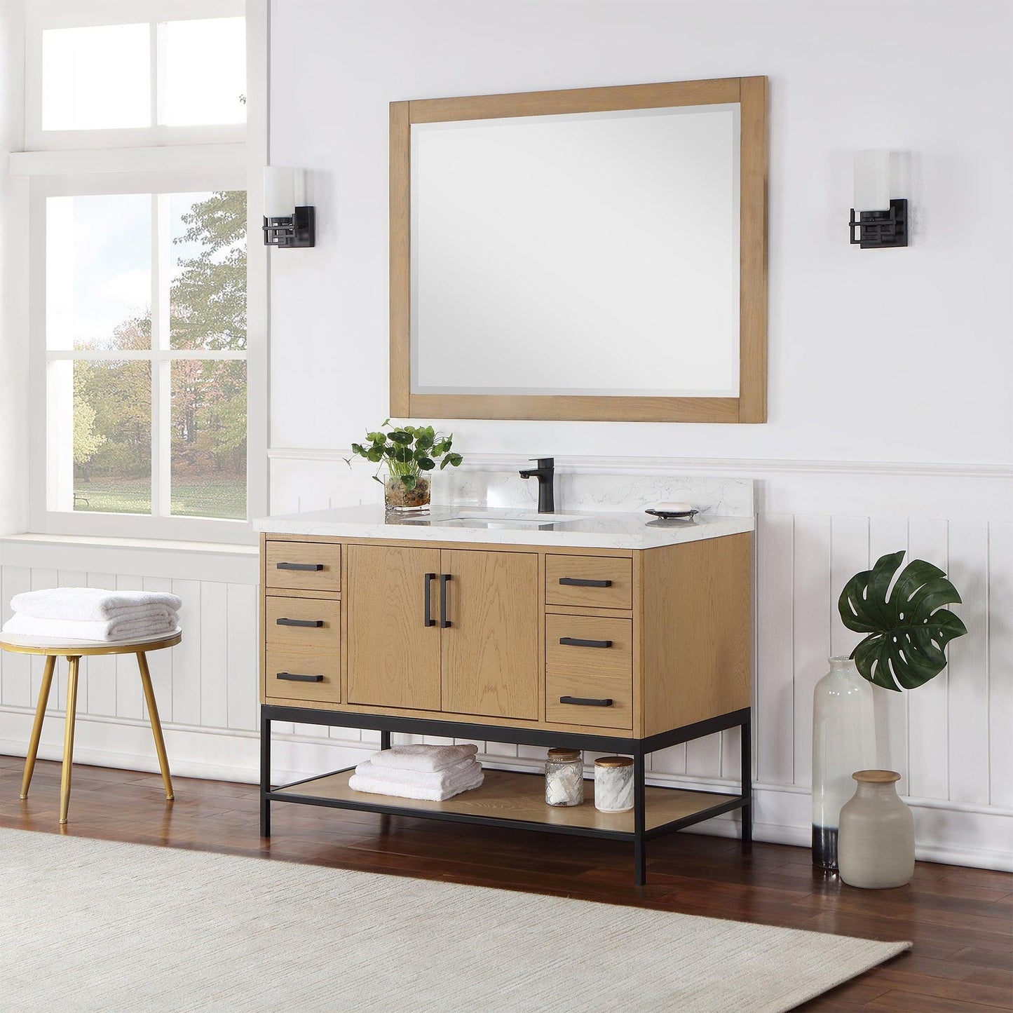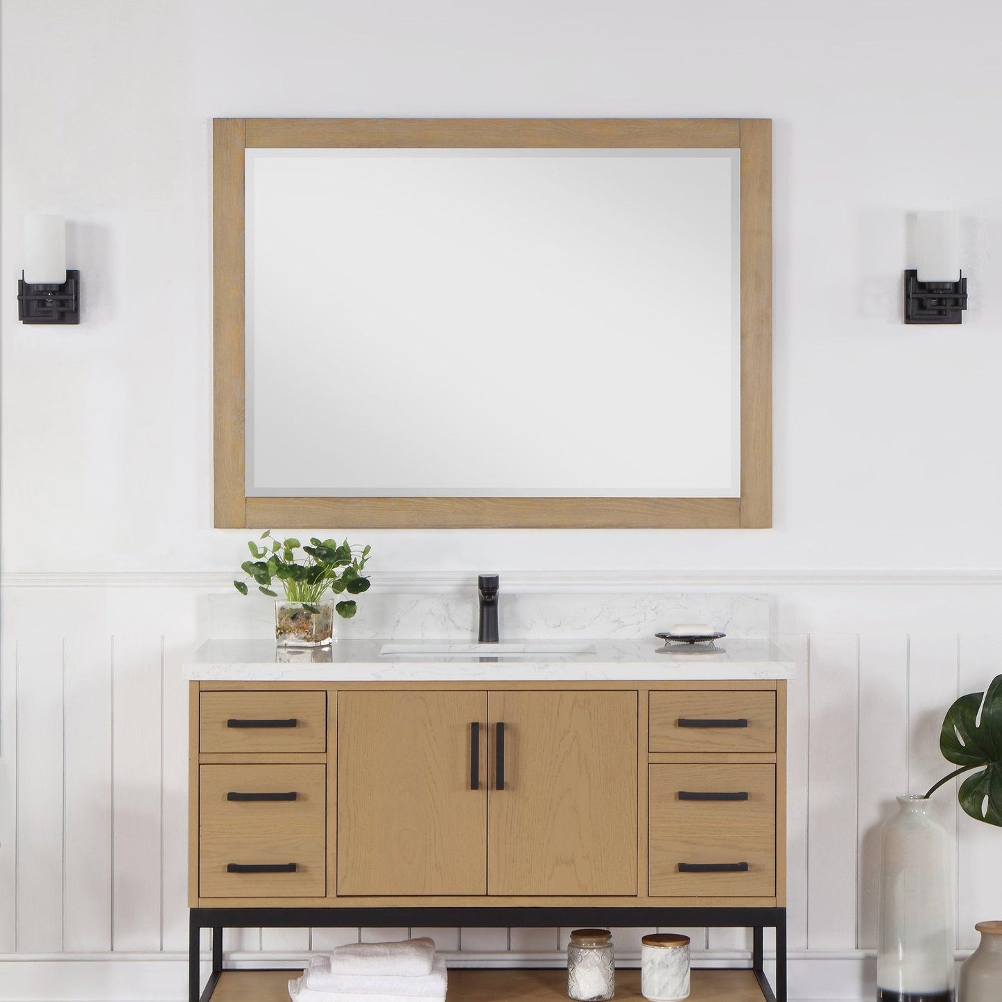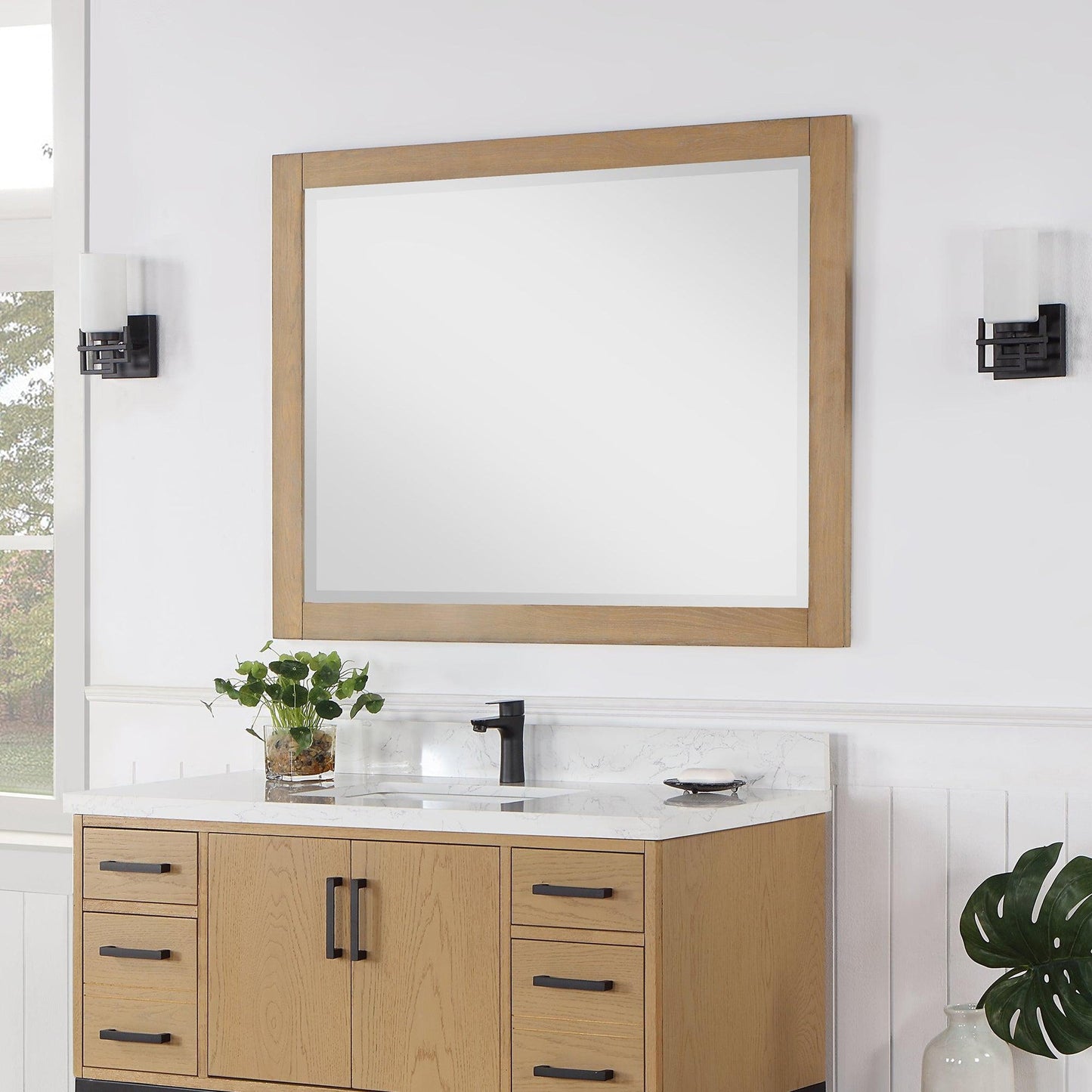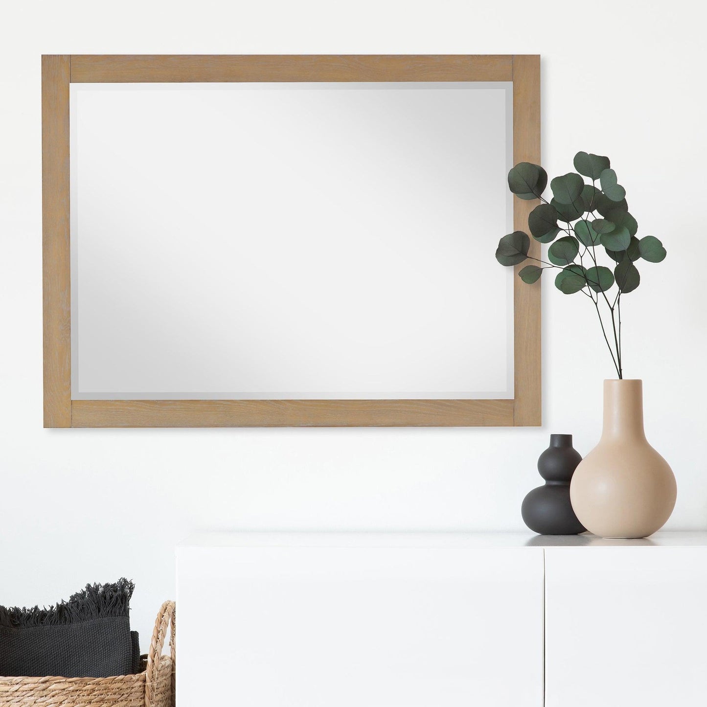 Altair Ivy 48" x 36" Rectangle Washed Oak Wood Framed Wall-Mounted Mirror