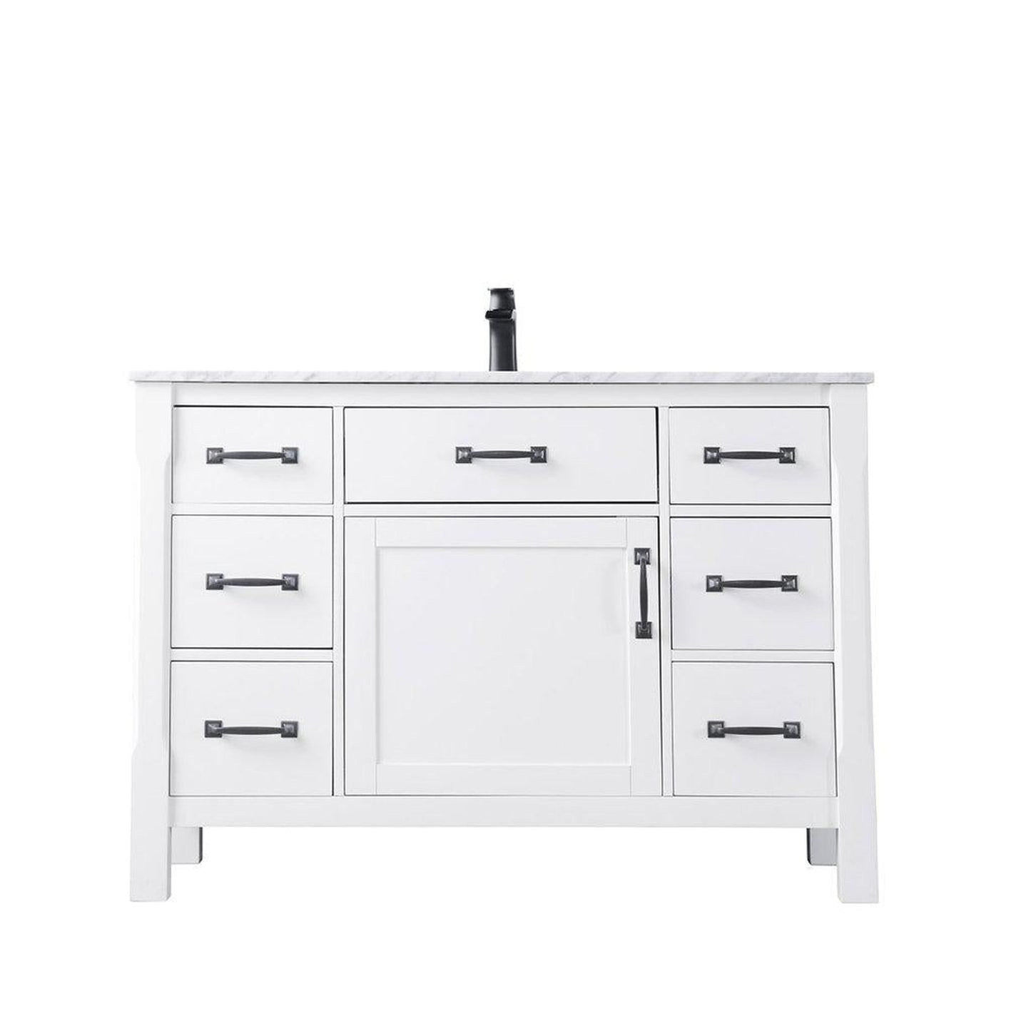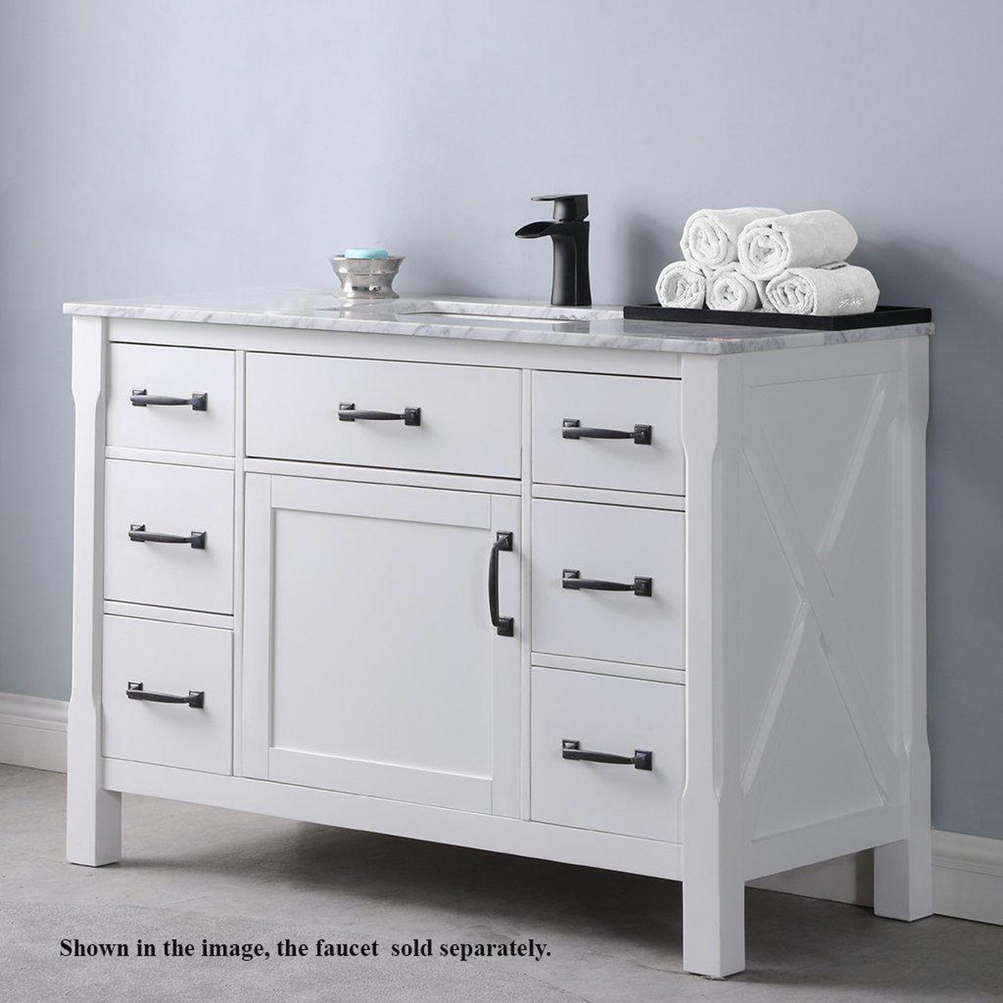 Altair Maribella 48" Single White Freestanding Bathroom Vanity Set With Natural Carrara White Marble Top, Rectangular Undermount Ceramic Sink, and Overflow