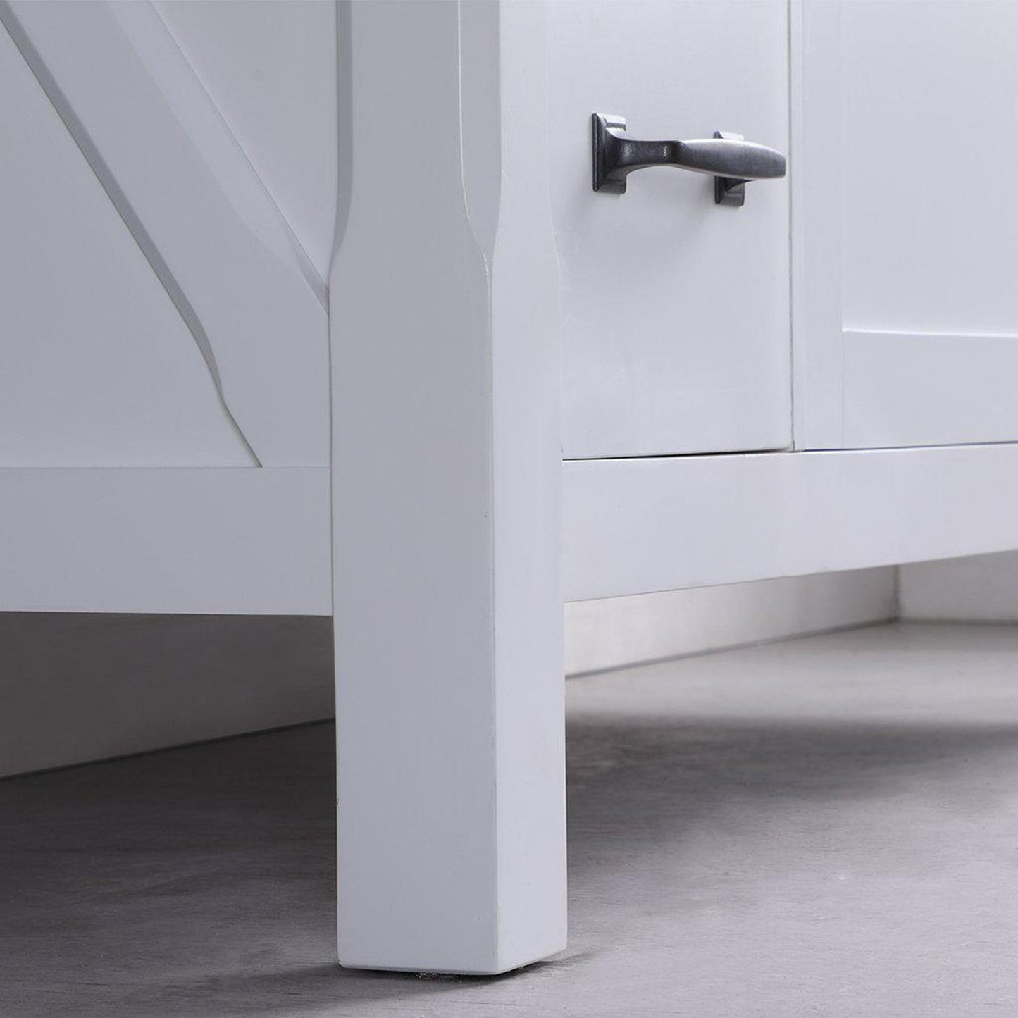 Add a splash of sumptuous style to your guest or master bath with the beautiful Maribella Vanity. Featuring a traditional crossbuck design on each side, this eye-catching piece has a simple yet refined look, complete with striking black-finish hardware. The sturdy cabinetry offers plenty of room for his and her bathroom accoutrements.