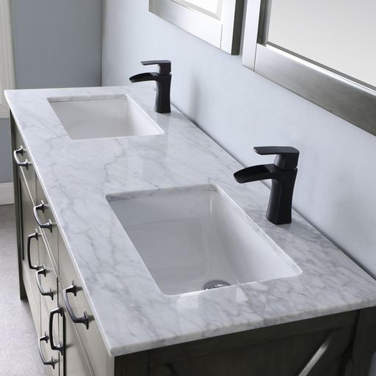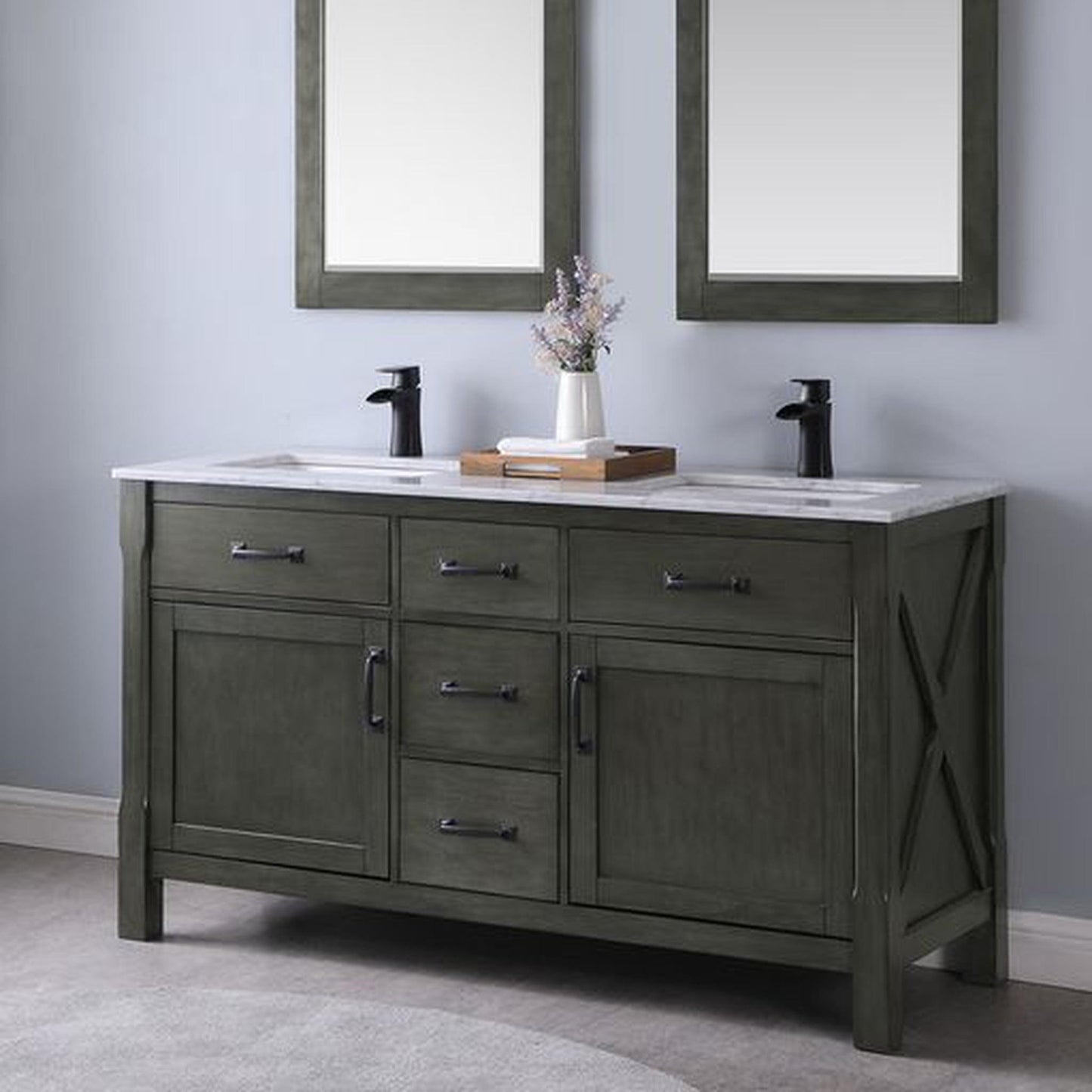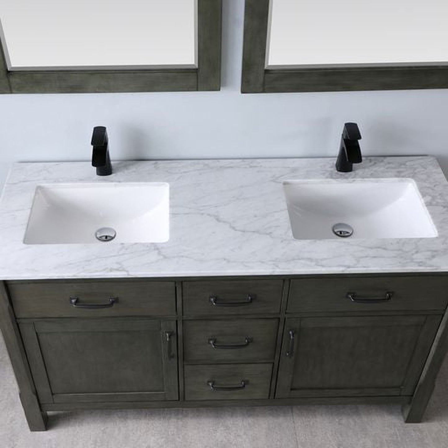 Altair Maribella 60" Double Rust Black Freestanding Bathroom Vanity Set With Natural Carrara White Marble Top, Rectangular Undermount Ceramic Sink, and Overflow