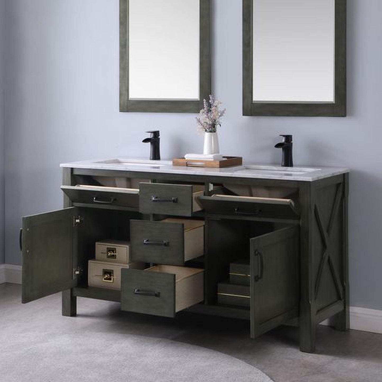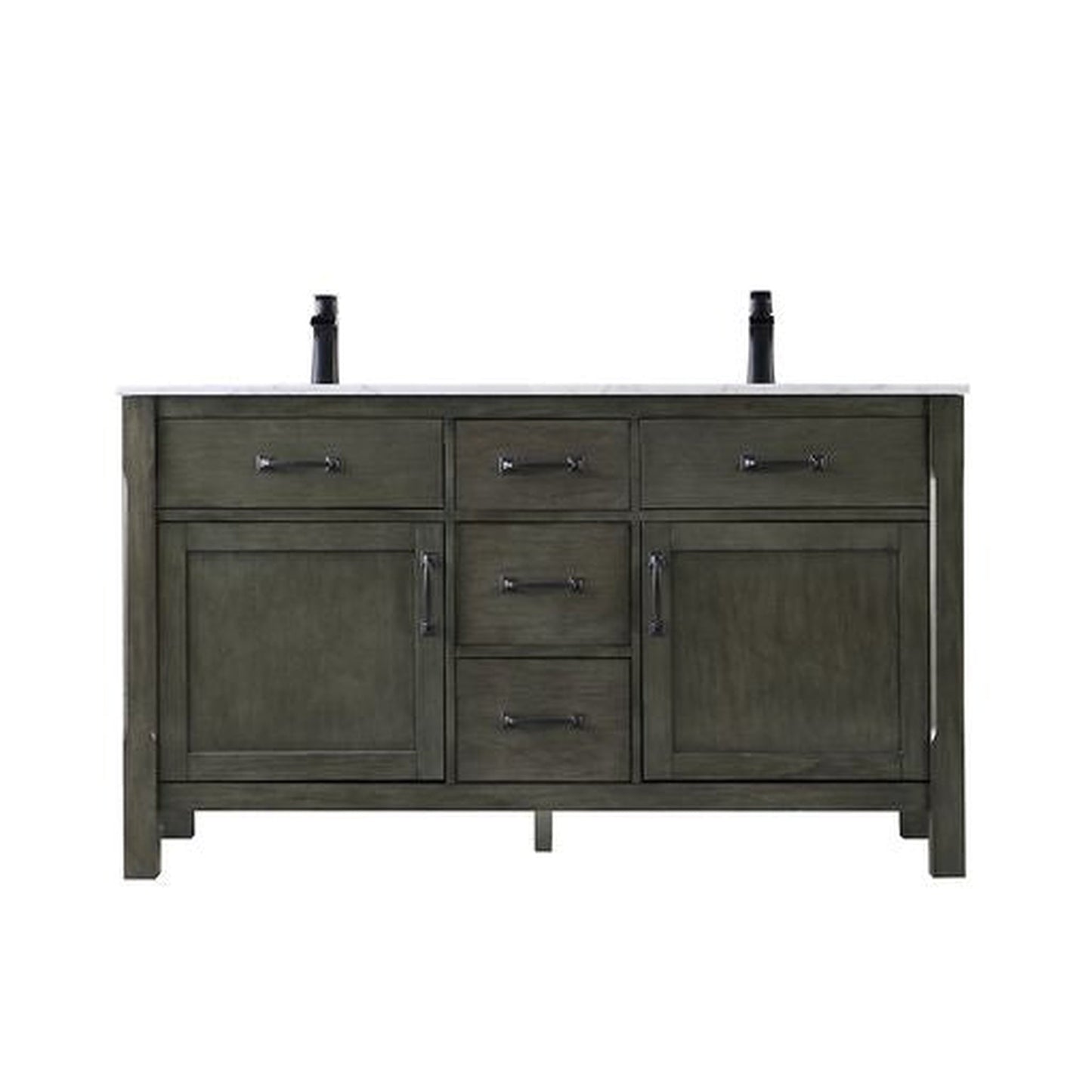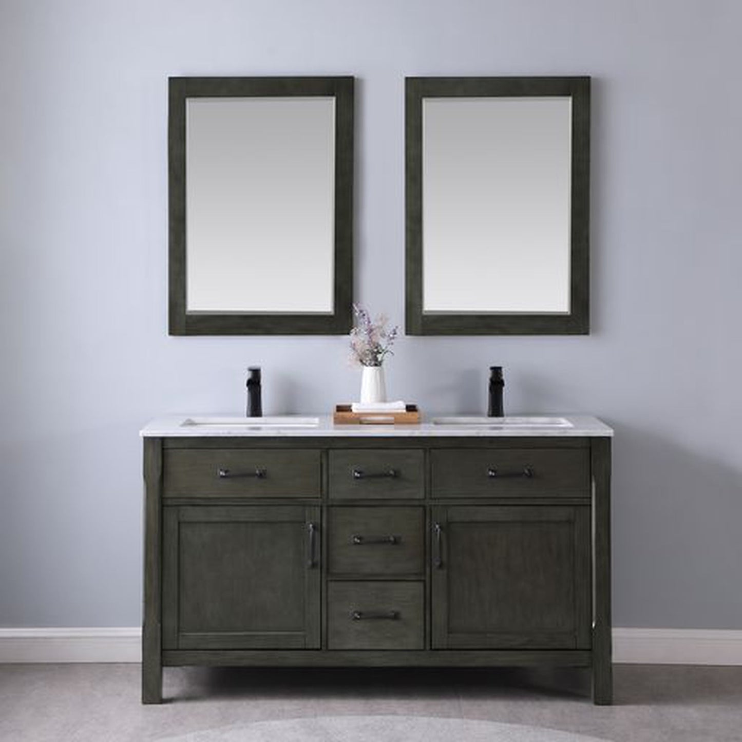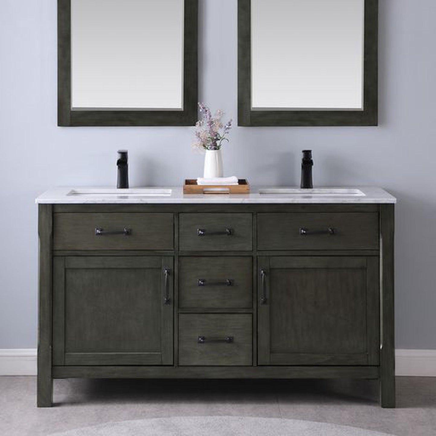 Altair Maribella 60" Double Rust Black Freestanding Bathroom Vanity Set With Natural Carrara White Marble Top, Rectangular Undermount Ceramic Sink, and Overflow