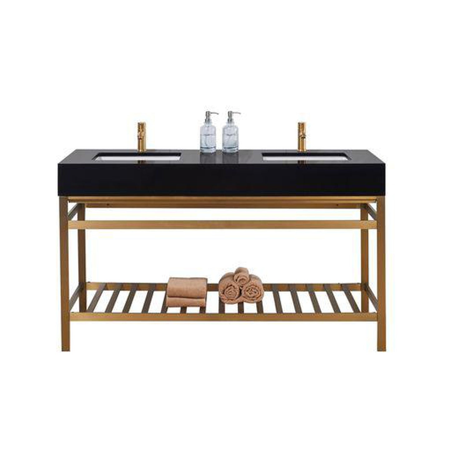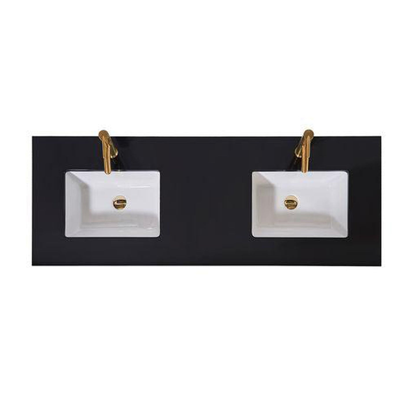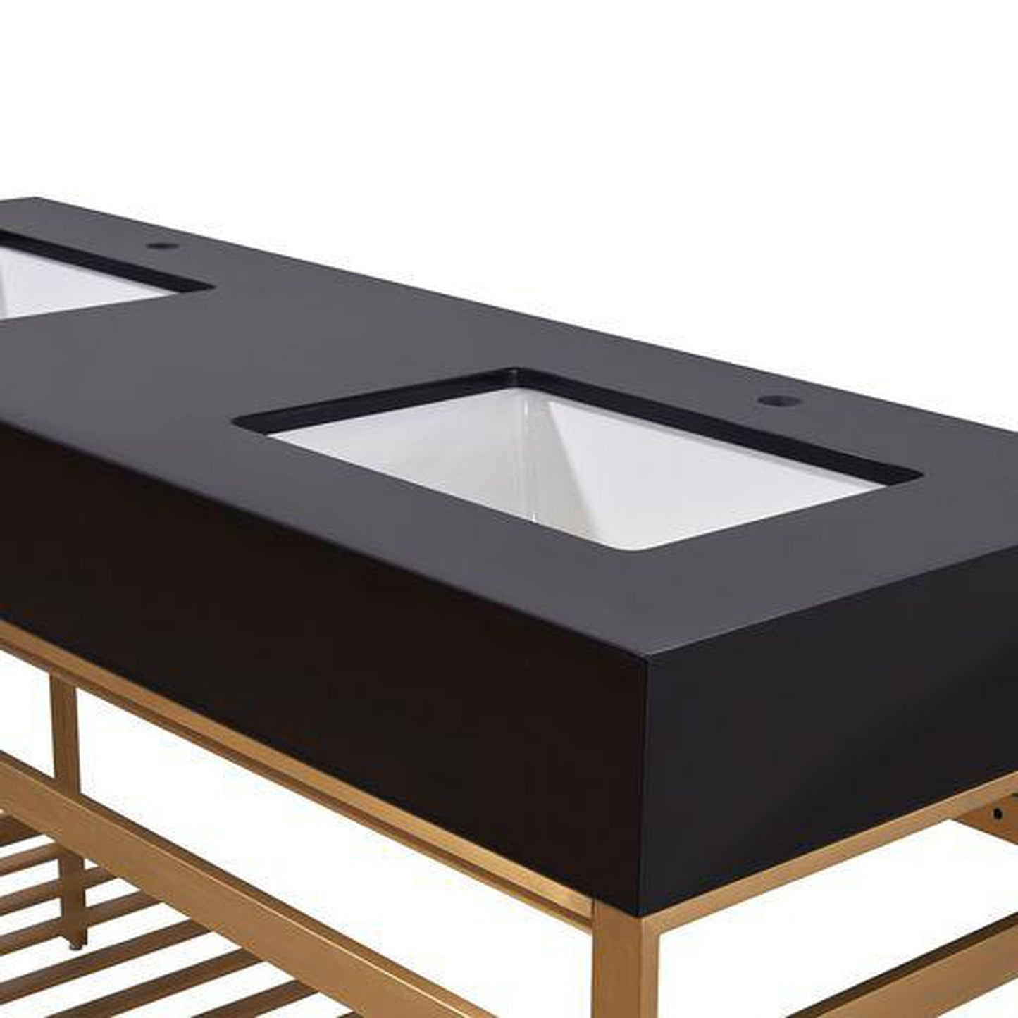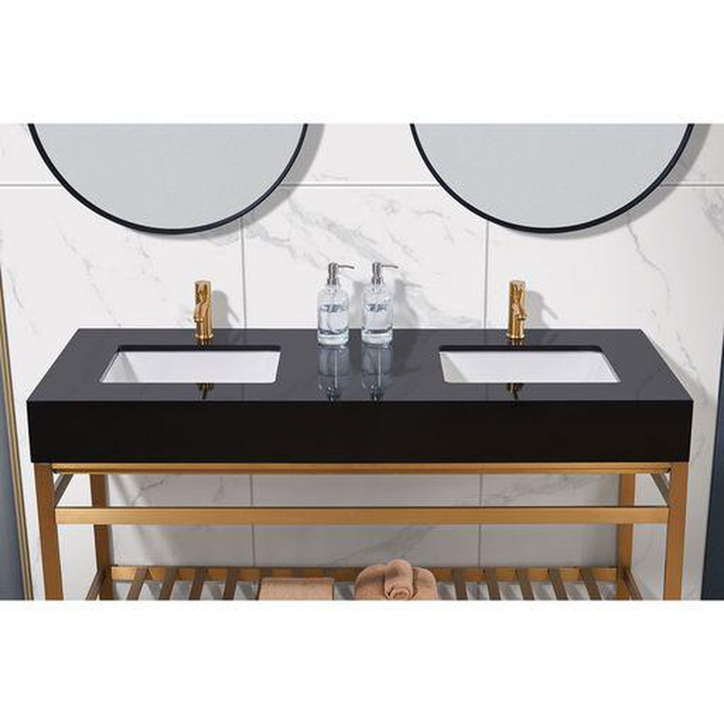 Altair Nauders 60" x 22" Imperial Black Apron Composite Stone Bathroom Vanity Top With White SInk
