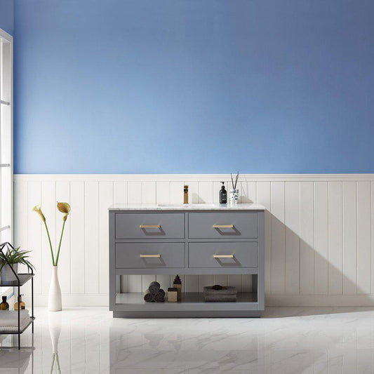 Altair Remi 48" Single Gray Freestanding Bathroom Vanity Set With Natural Carrara White Marble Top, Rectangular Undermount Ceramic Sink, and Overflow