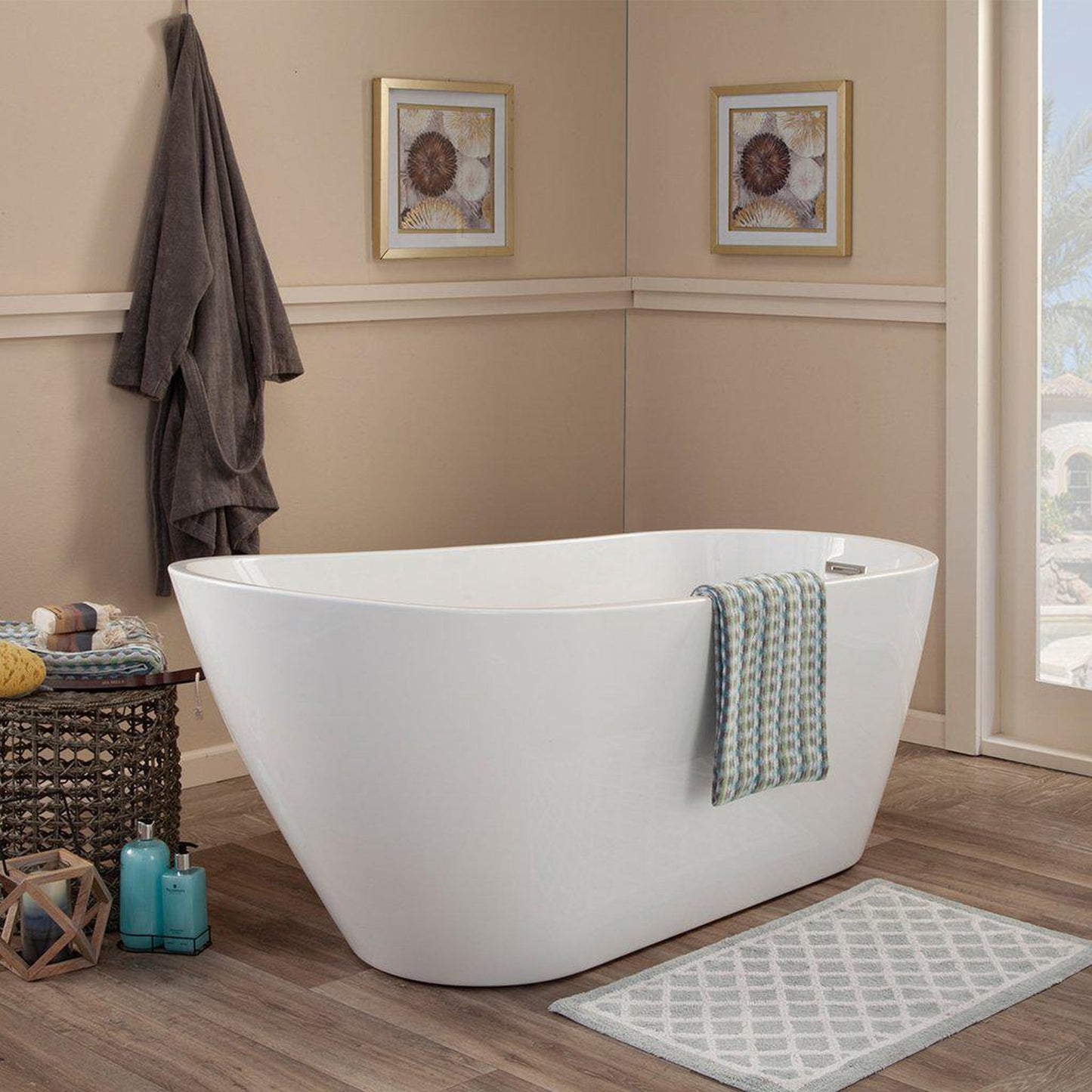 - Materials: Freestanding acrylic bathtub