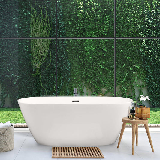 Sink deep into luxury with our Tazlar Freestanding Soaking Bathtub, thoughtfully designed to deliver an unforgettable bathing experience. This tub features a spacious basin for ample leg room as well as gently sloped ends for comfortable reclining. It’s engineered for long-lasting beauty and performance, made with smooth, durable acrylic that resists stains and heat while making cleaning a breeze.