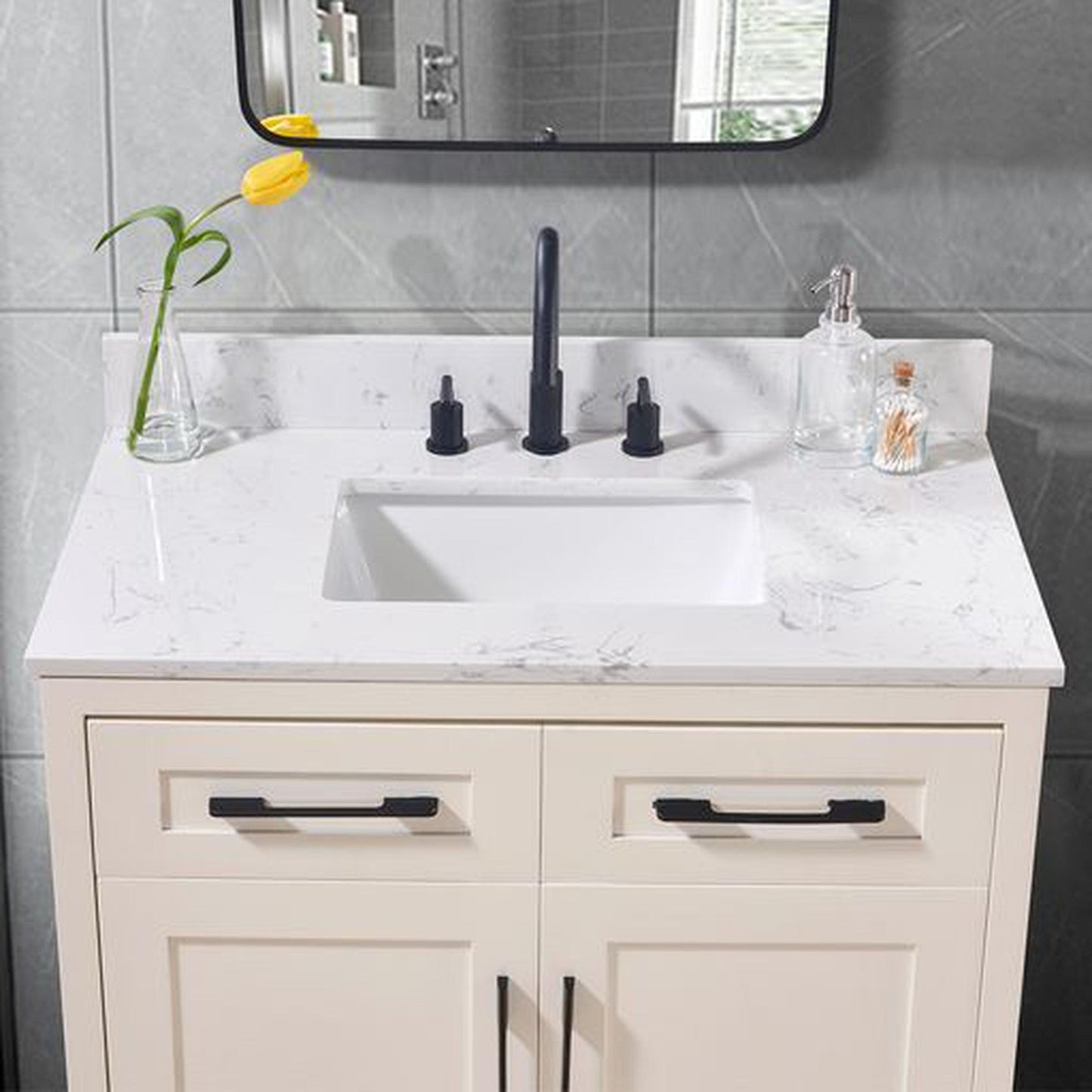 Altair Trento 37" x 22" Aosta White Composite Stone Bathroom Vanity Top With White SInk