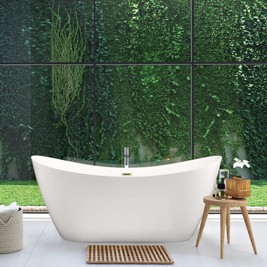 Altair Vansza 67" x 32" White Acrylic Freestanding Bathtub With Drain and Overflow