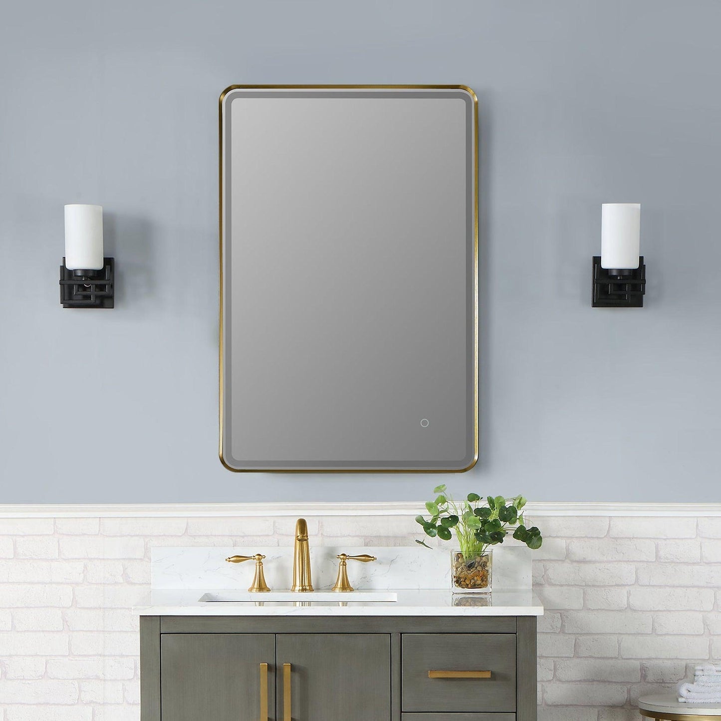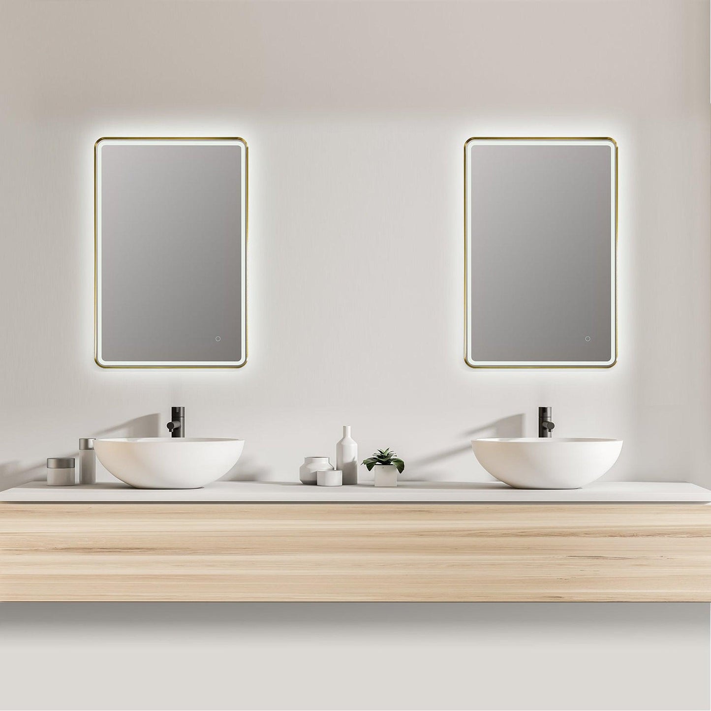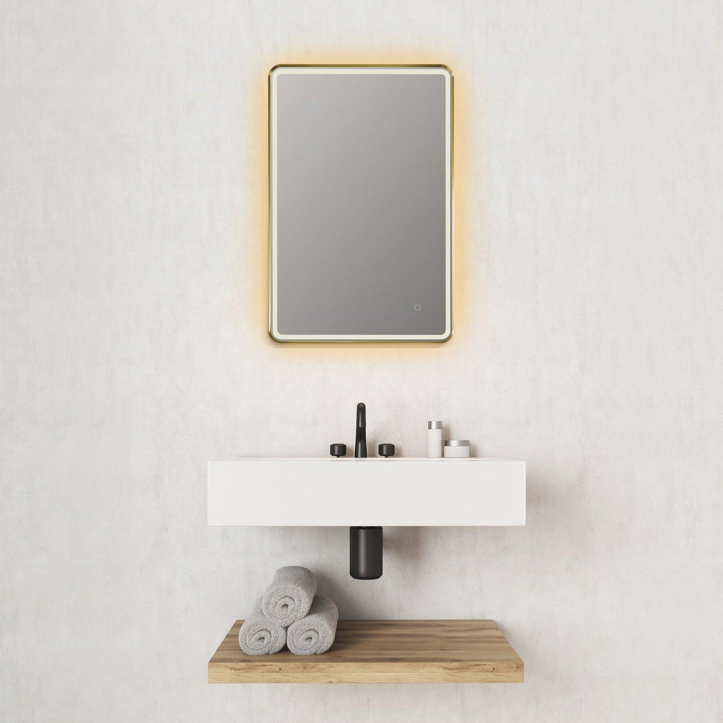 Altair Viaggi 24" Rectangle Brushed Gold Wall-Mounted LED Mirror