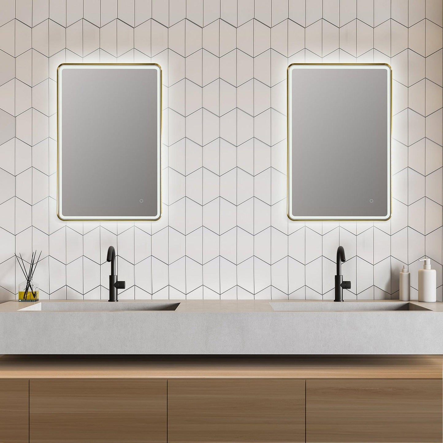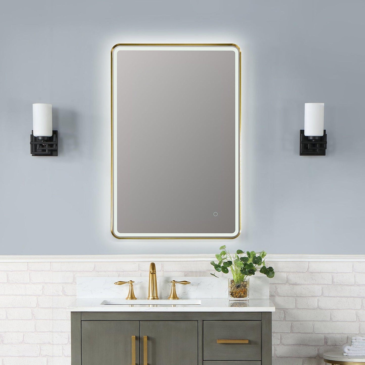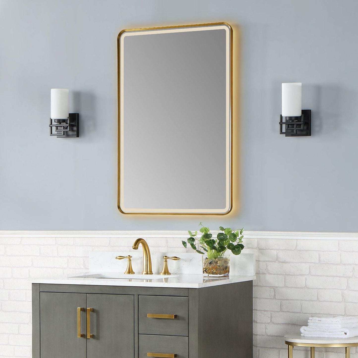 Altair Viaggi 24" Rectangle Brushed Gold Wall-Mounted LED Mirror