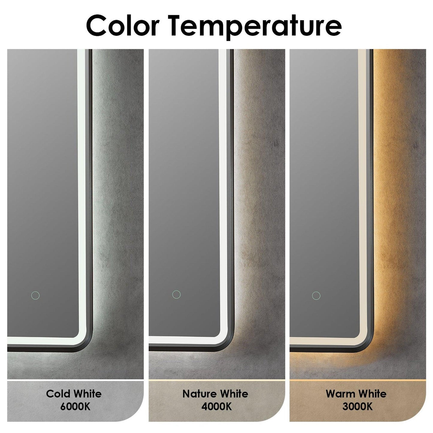 - Stepless light color change from 3000K/4000K/ 6000K, dimmable by holding touch sensor.