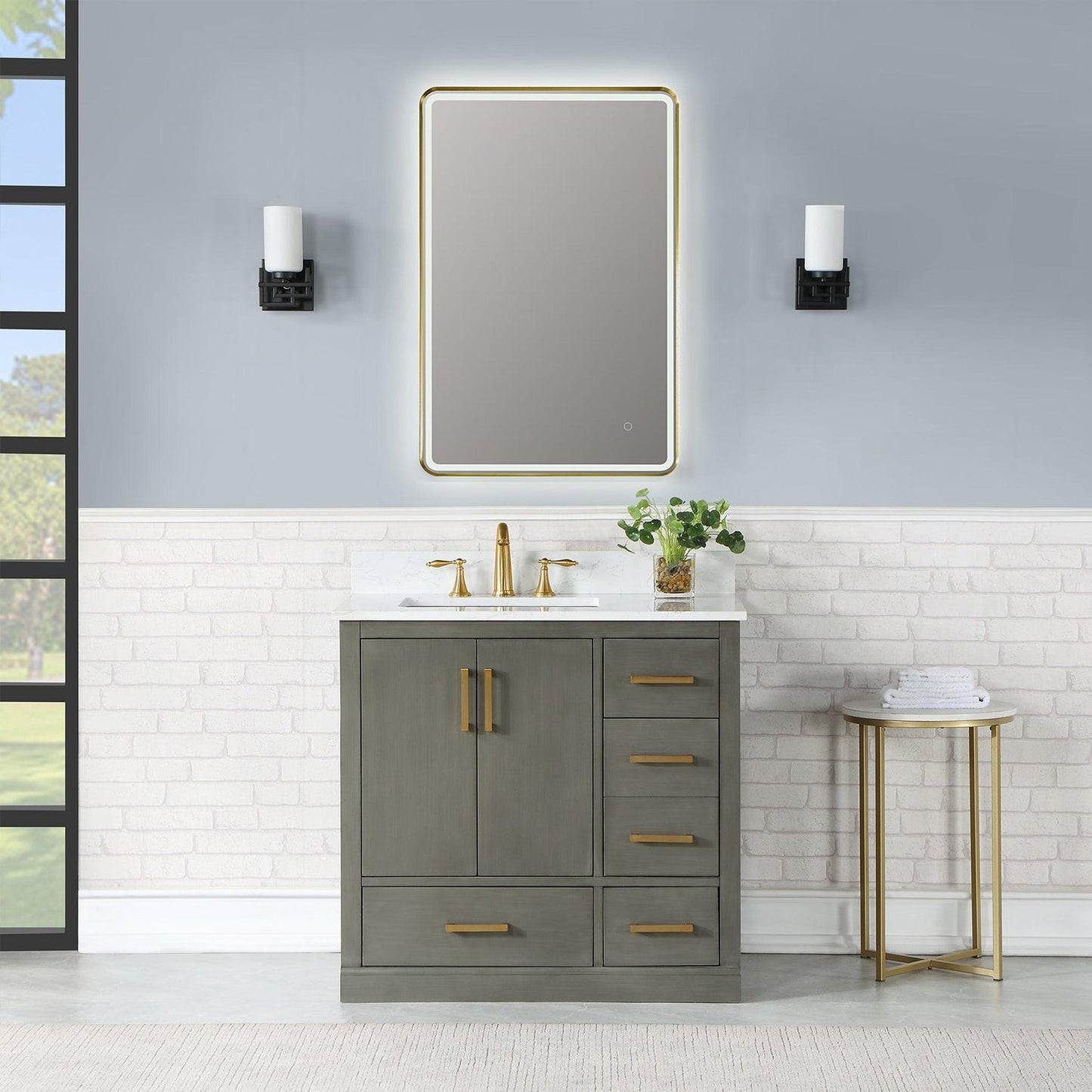 - Available in Black or Brushed Gold aluminum frame.