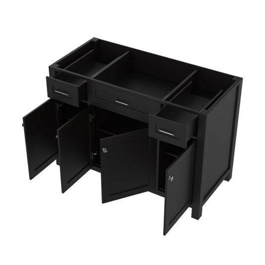 Alya Bath Norwalk Collection 48-inch bathroom vanity is built with solid wood construction, and offers lifetime reliability. This free-standing vanity includes four soft-closing doors and two soft-closing drawers with brushed nickel hardware that adds a modern appeal. This transitional vanity has cabinet space for all of your storage needs.