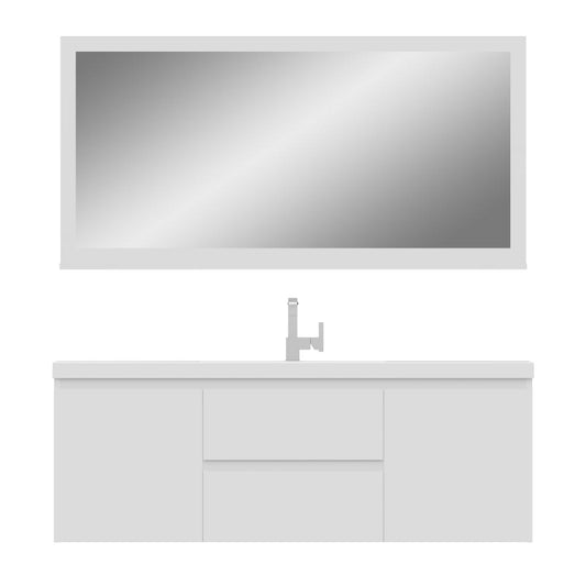 Alya Bath Paterno 60" Single White Modern Wall Mounted Bathroom Vanity With Acrylic Top and Integrated Sink