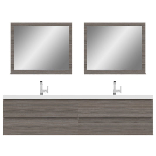 Alya Bath Paterno 84" Double Gray Modern Wall Mounted Bathroom Vanity With Acrylic Top and Integrated Sink
