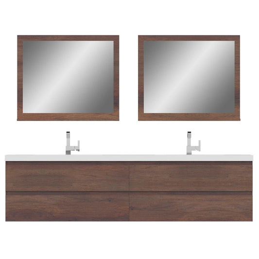 Alya Bath Paterno 84" Double Rosewood Modern Wall Mounted Bathroom Vanity With Acrylic Top and Integrated Sink