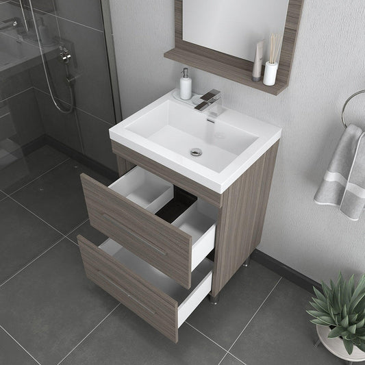 Alya Bath Ripley 24" Single Gray Modern Freestanding Bathroom Vanity With Integrated Acrylic Top, Acrylic Sink and Wall Mounted Mirror