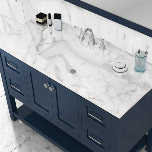 Alya Bath Wilmington 48" Single Blue Freestanding Bathroom Vanity With Carrara Marble Top, Ceramic Sink and Wall Mounted Mirror